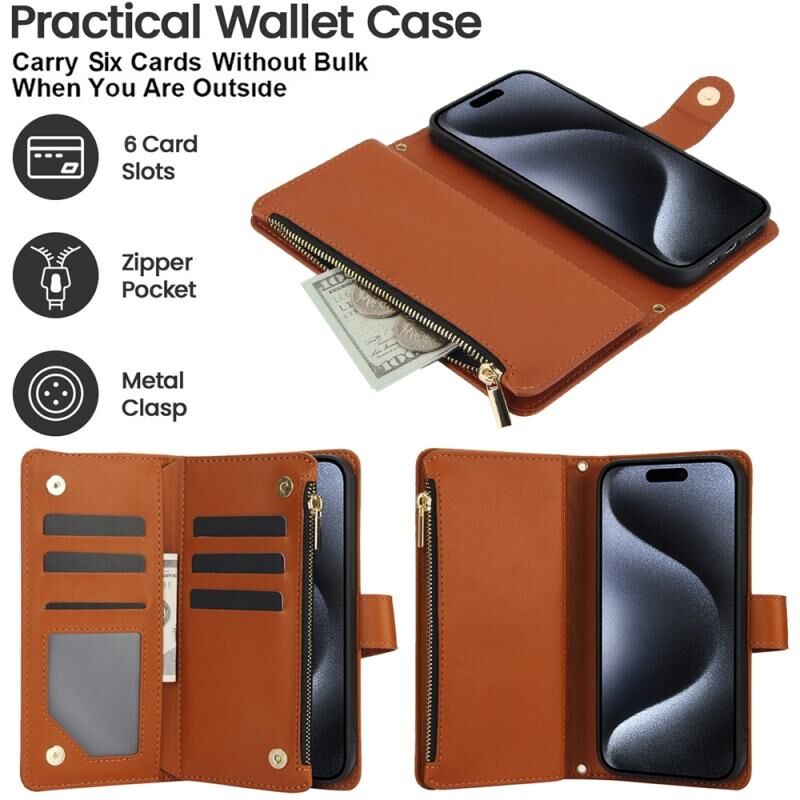 5. Multi-card Wallet Function: multiple card slots and zipper wallet pockets, cash compartments can store your credit cards and daily small bills.