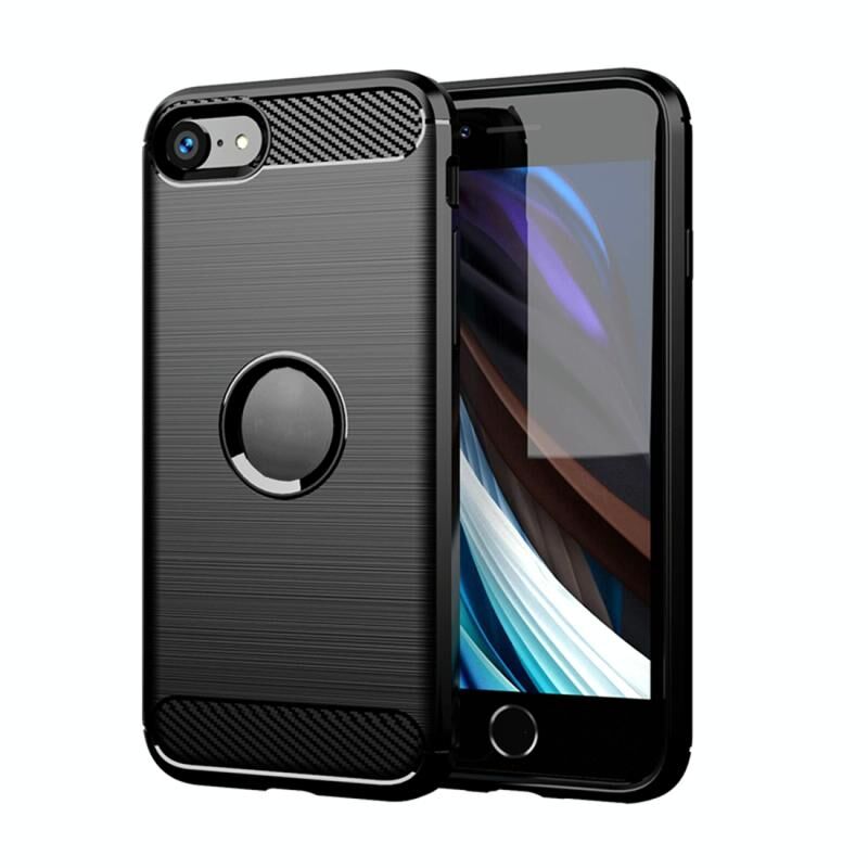 For iPhone SE 2022 / SE 2020 Brushed Texture Carbon Fiber TPU Case(Μαύρο)