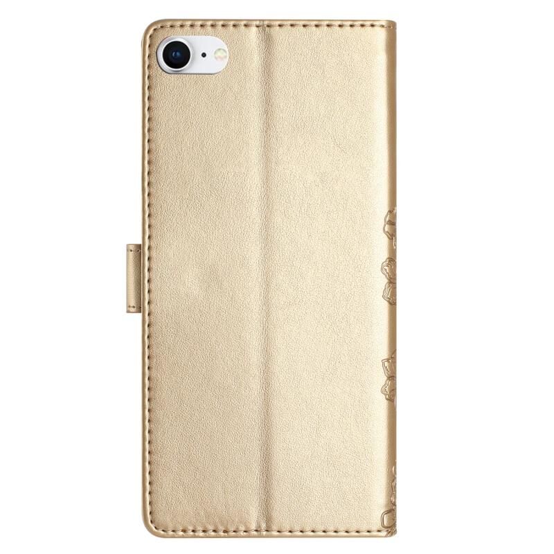 For iPhone SE 2022 / SE 2020 Cherry Blossom Butterfly Skin Feel Embossed PU Phone Case(Gold)