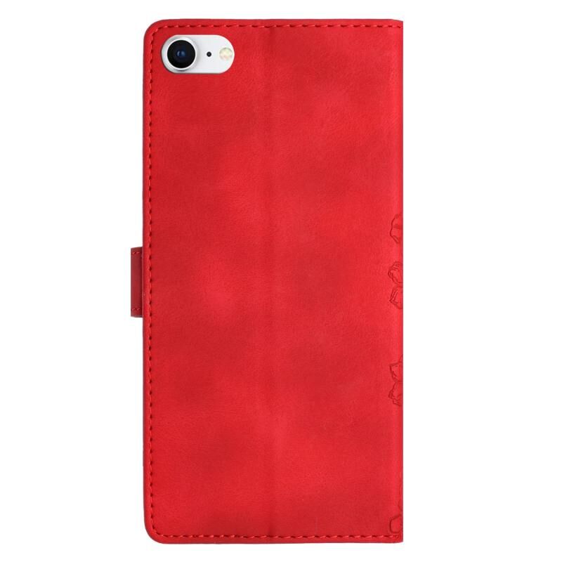 For iPhone SE 2022 / SE 2020 Cherry Blossom Butterfly Skin Feel Embossed PU Phone Case(Red)