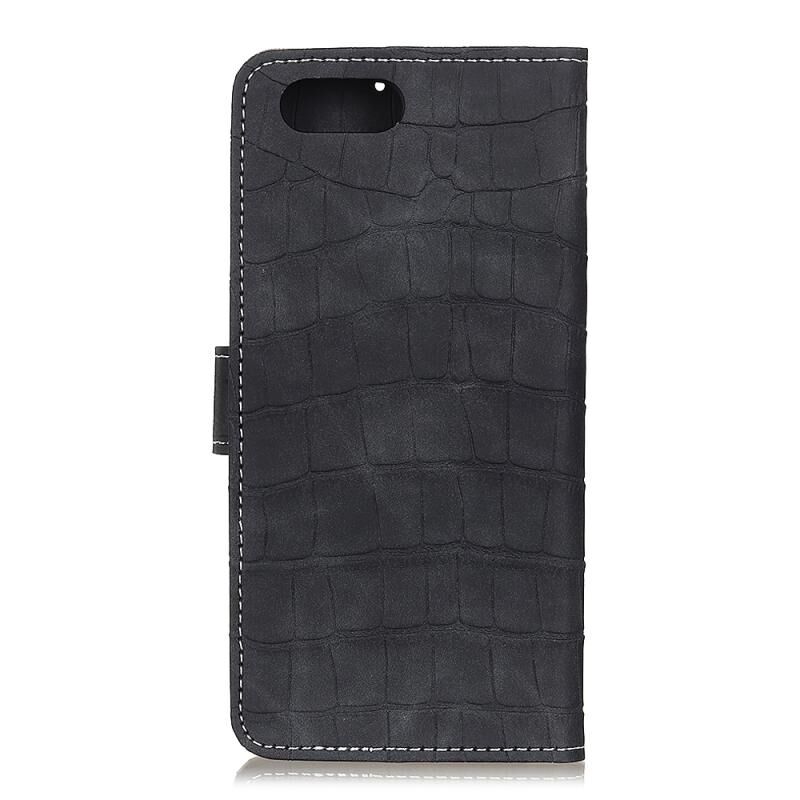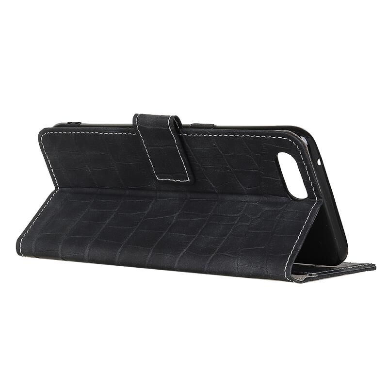 Θήκη δέρματος οριζόντιας αναδίπλωσης με υφή κροκόδειλου για iPhone SE 2022 / SE 2020 με βάση & υποδοχές καρτών & πορτοφόλι (Μαύρο)