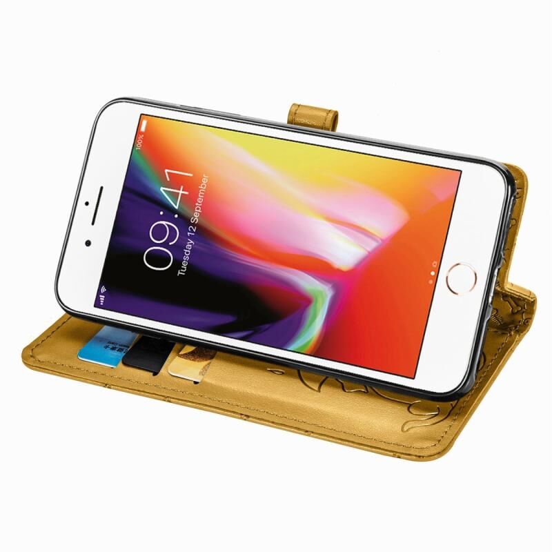 Θήκη δέρματος οριζόντιας αναδίπλωσης με ανάγλυφα σχέδια χαριτωμένων γάτας και σκύλου με βάση / υποδοχή κάρτας / πορτοφόλι / κορδόνι για iPhone SE 2022 / SE 2020 (Ροζ)