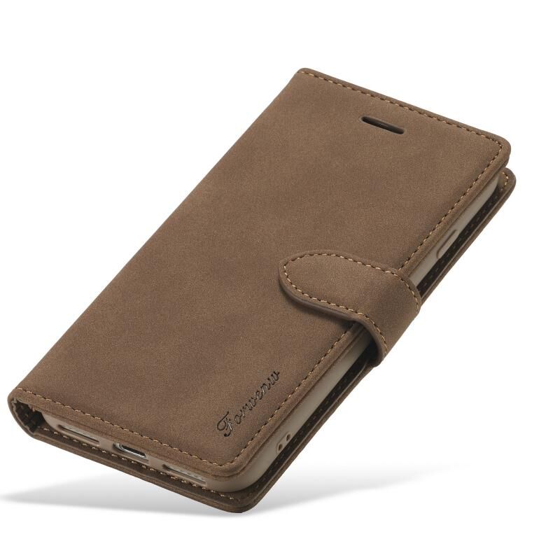 Για iPhone SE 2022 / SE 2020 Forwenw F1 Series Ματ Θήκη Δέρματος Οριζόντιας Αναδίπλωσης με Ισχυρό Μαγνητισμό, Θήκη & Θήκες Καρτών & Πορτοφόλι & Κορνίζα Φωτογραφιών (Χρυσό Ρόδι) (Forwenw)