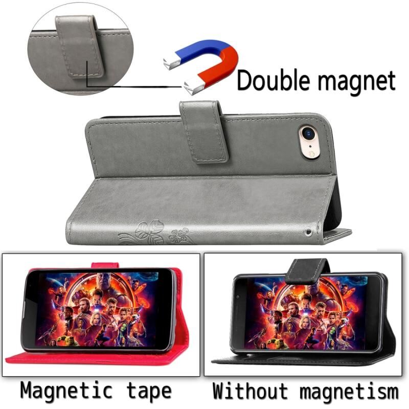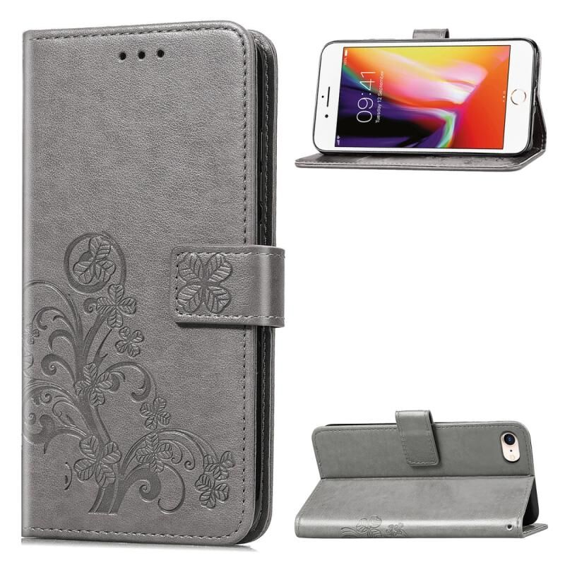 Για iPhone SE 2022 / SE 2020 Θήκη Προστασίας Κινητού Δέρμα με Κούμπωμα Τριφυλλιού, Λουράκι, Θήκη Καρτών, Πορτοφόλι & Λειτουργία Στήριξης (Γκρι)