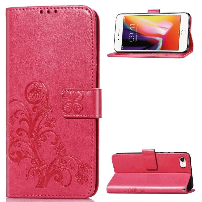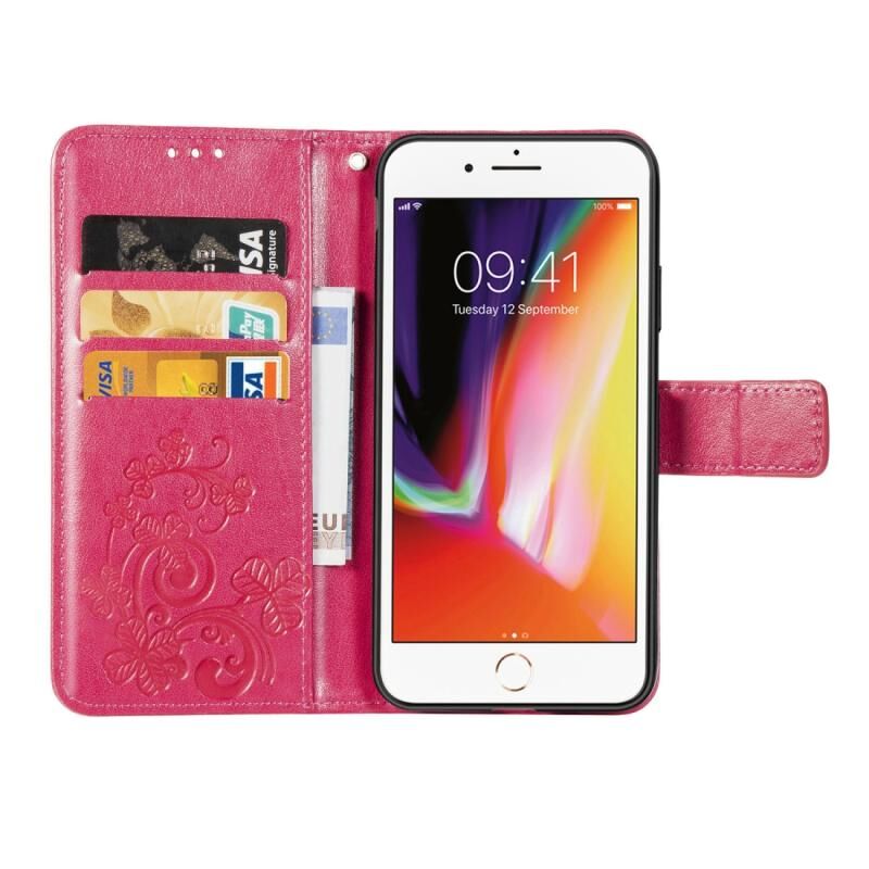 Για iPhone SE 2022 / SE 2020 Θήκη Προστασίας Κινητού Δέρμα με Κούμπωμα Τριφυλλιού, Λουράκι, Θήκη Καρτών, Πορτοφόλι & Λειτουργία Στήριξης (Ματζέντα)