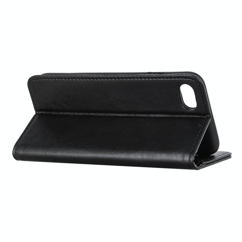 For iPhone SE 2022 / SE 2020 Magnetic Suction Crazy Horse Pattern PU Left and Right Open with Bracket and Card Slot and Wallet(Black)