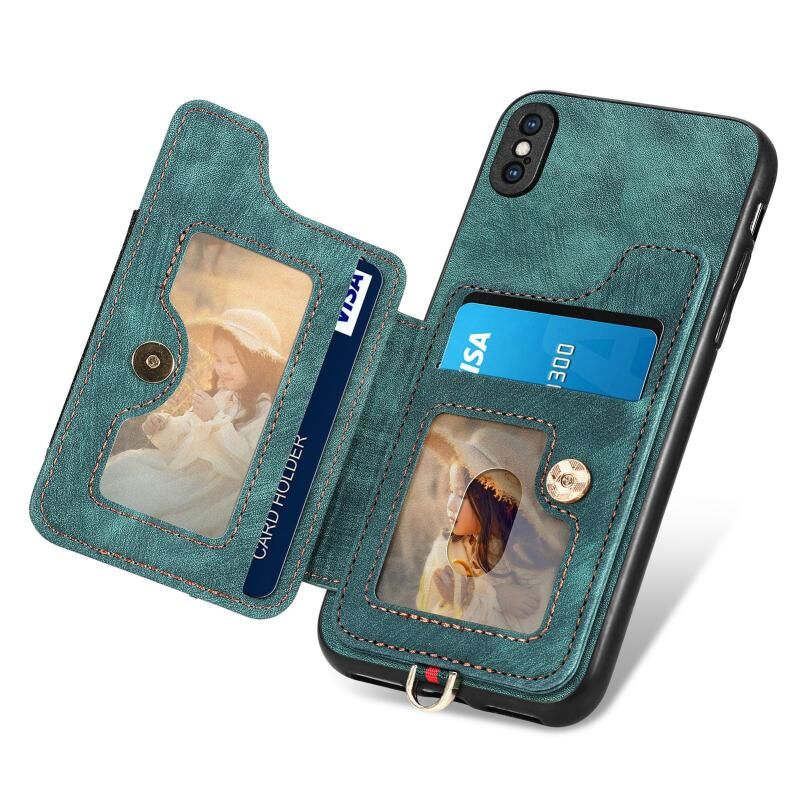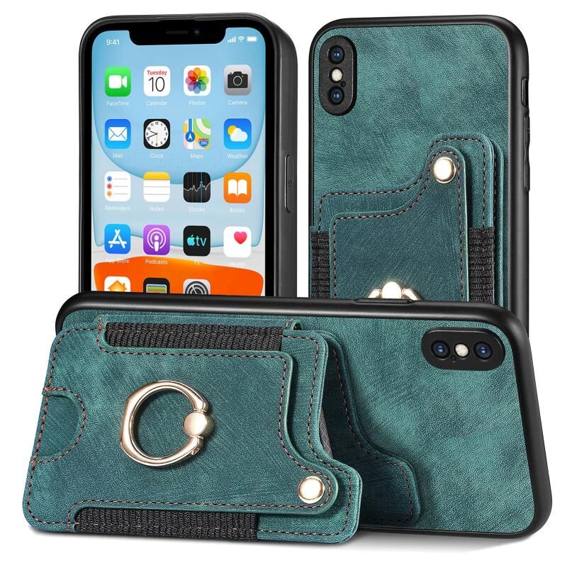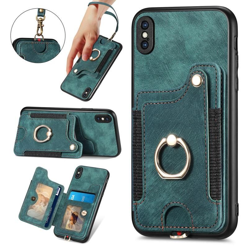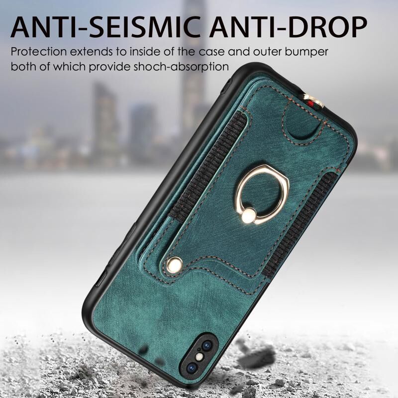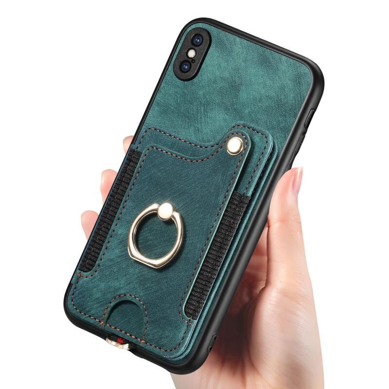 Θήκη τηλεφώνου πορτοφόλι με δακτύλιο και πολλές θέσεις για κάρτες, με ρετρό αίσθηση για iPhone SE 2022 / SE 2020 (πράσινο)