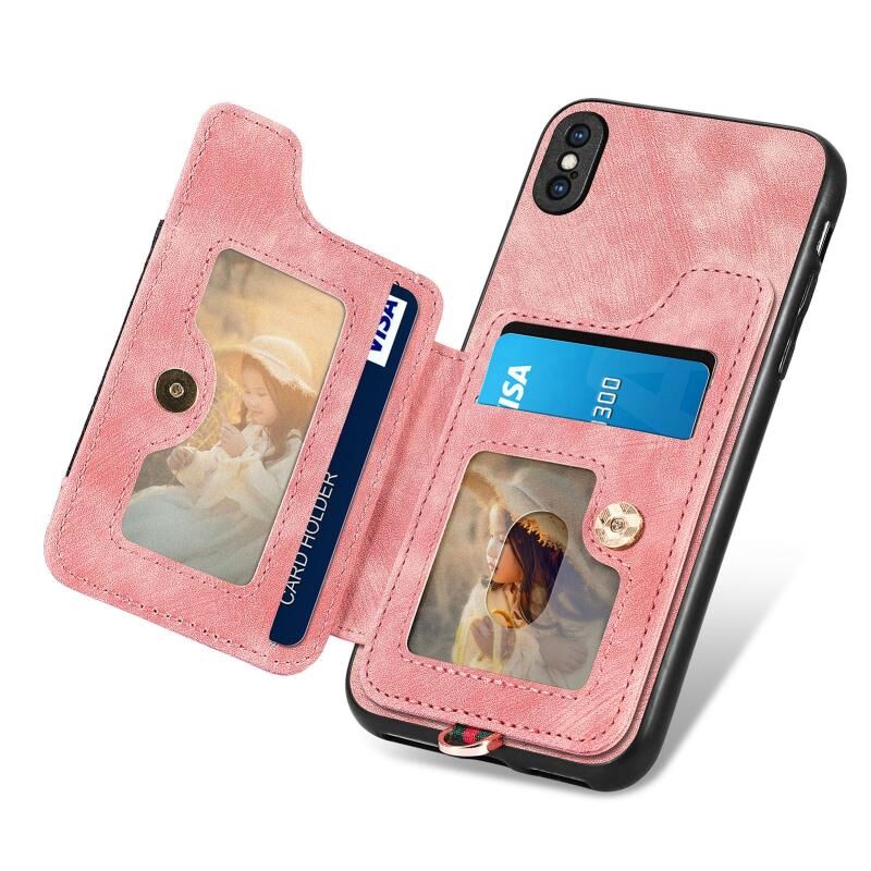 Θήκη τηλεφώνου πορτοφόλι με δακτύλιο και πολλές θέσεις για κάρτες, με ρετρό αίσθηση για iPhone SE 2022 / SE 2020 (ρόζ)