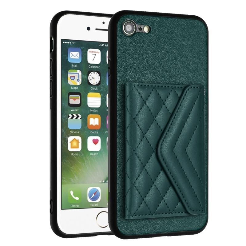 Θήκη κινητού τηλεφώνου με υφή ρόμβου και μακρύ κορδόνι για iPhone SE 2022 / SE 2020, με προστασία RFID (Πράσινο)