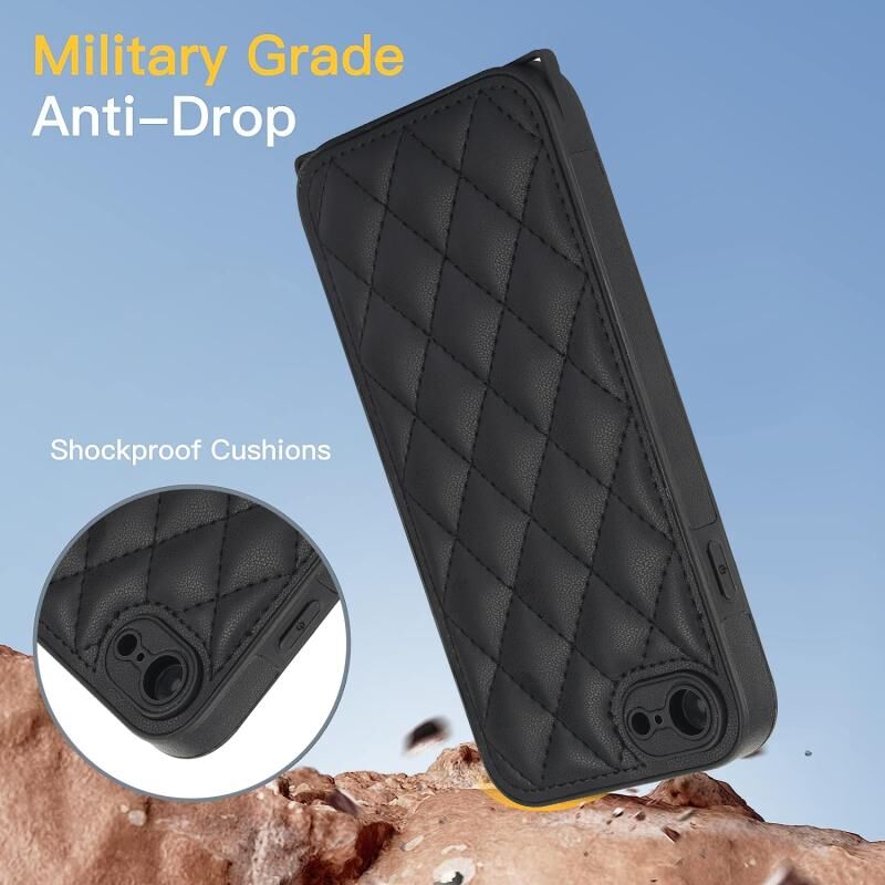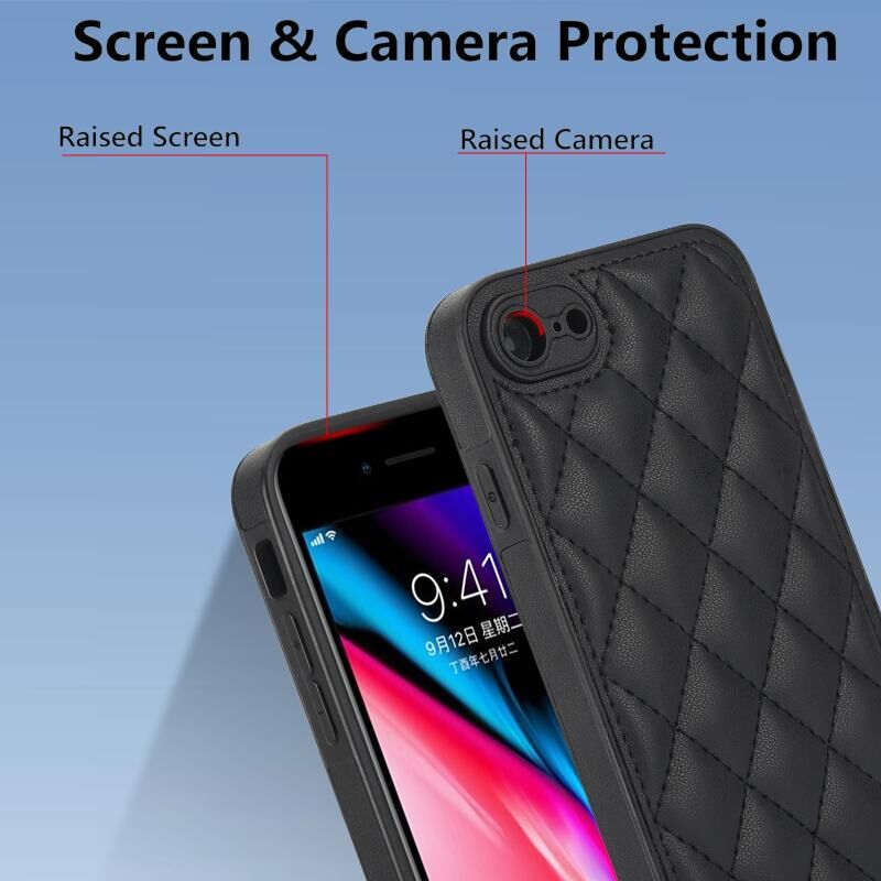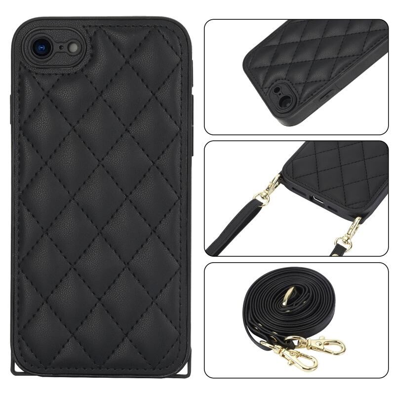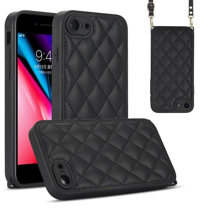 Θήκη τηλεφώνου με υφή ρόμβου για iPhone SE 2022 / SE 2020 με διπλό κορδόνι (Λευκό)