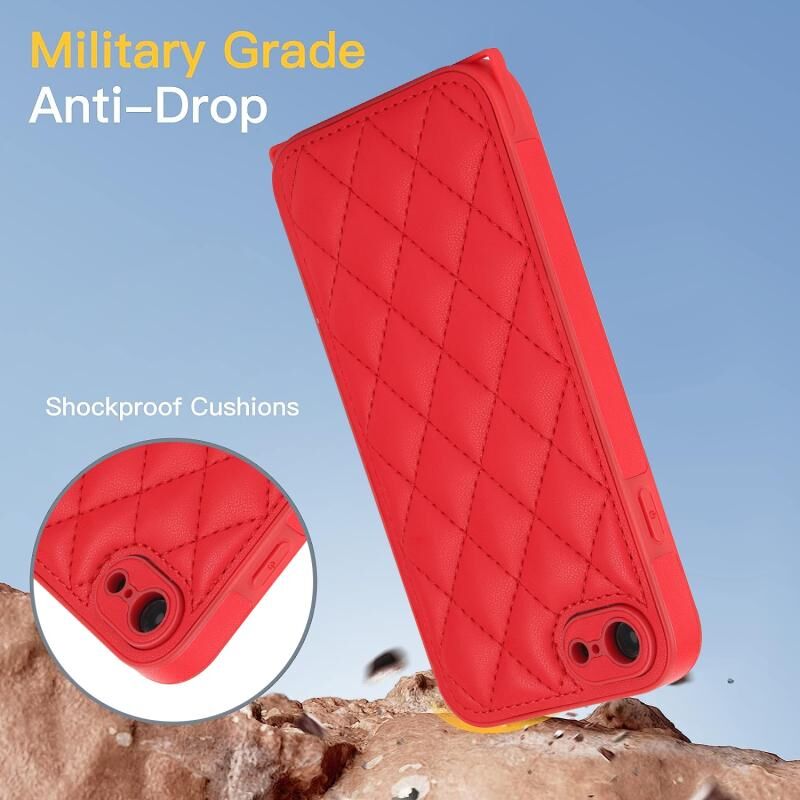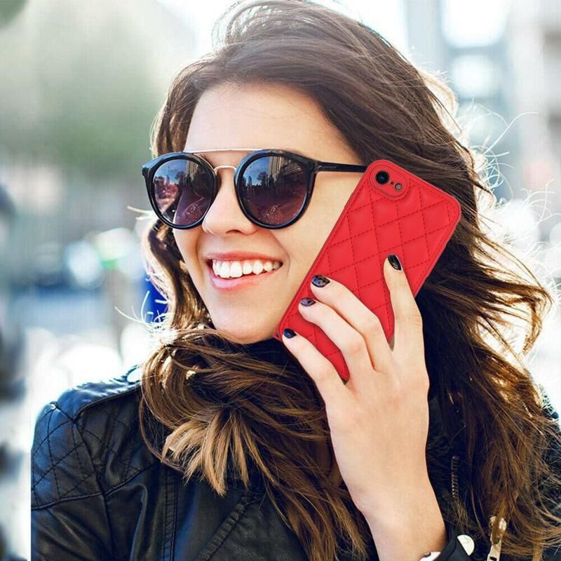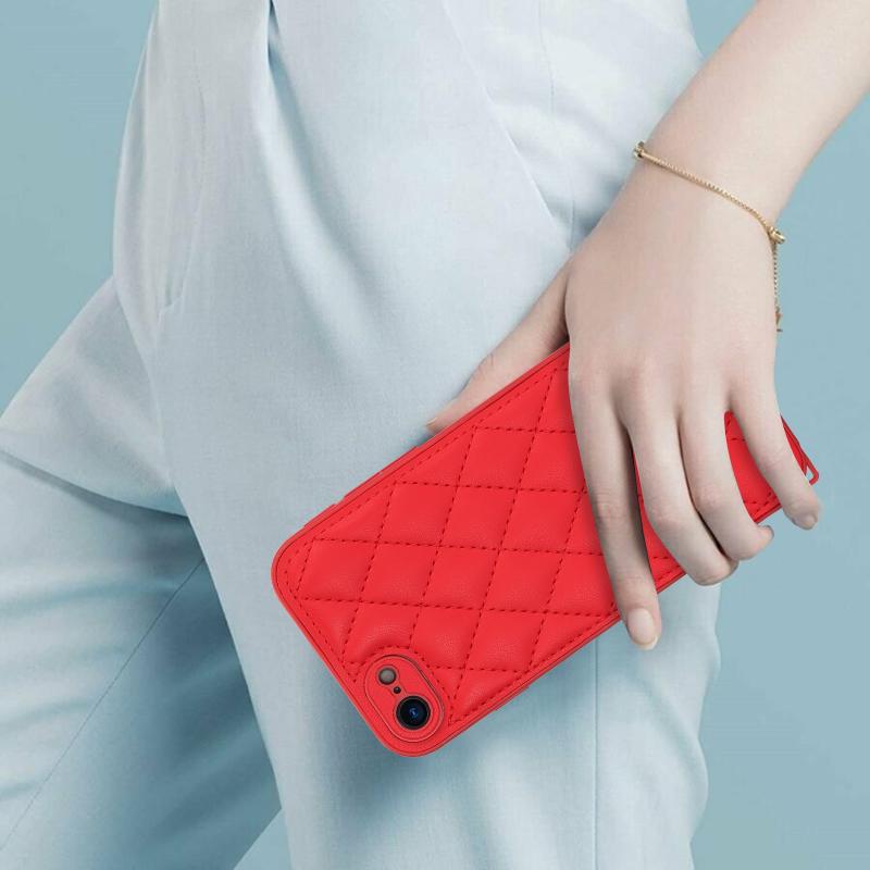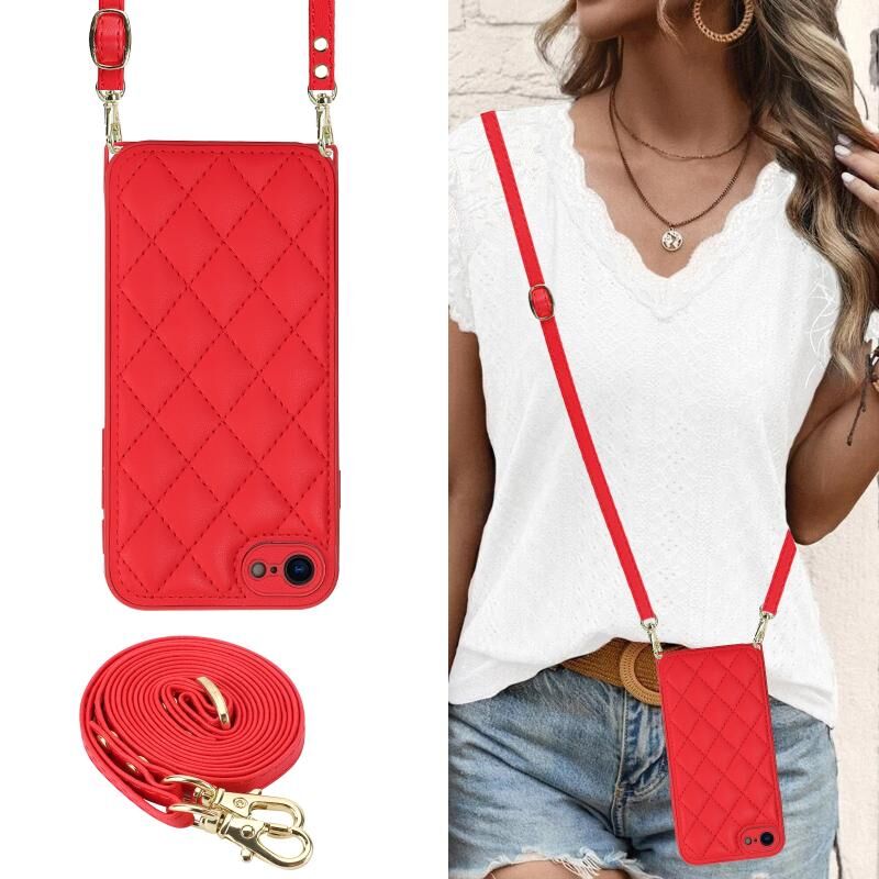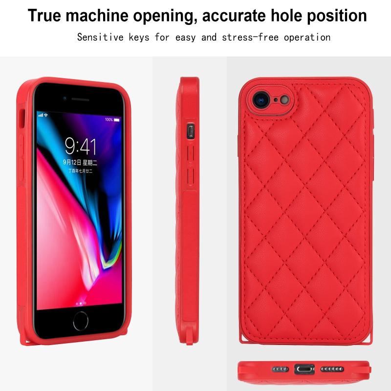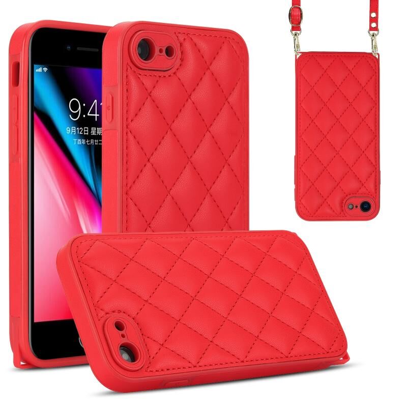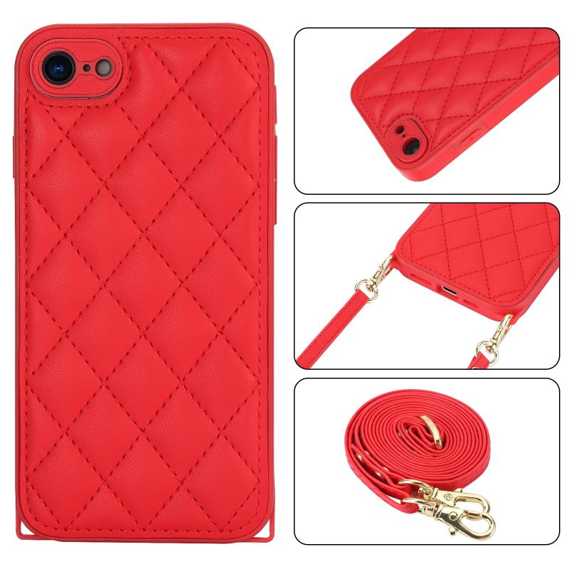 Θήκη iPhone SE 2022 / SE 2020 με υφή ρόμβου & διπλό κορδόνι (Κόκκινο)