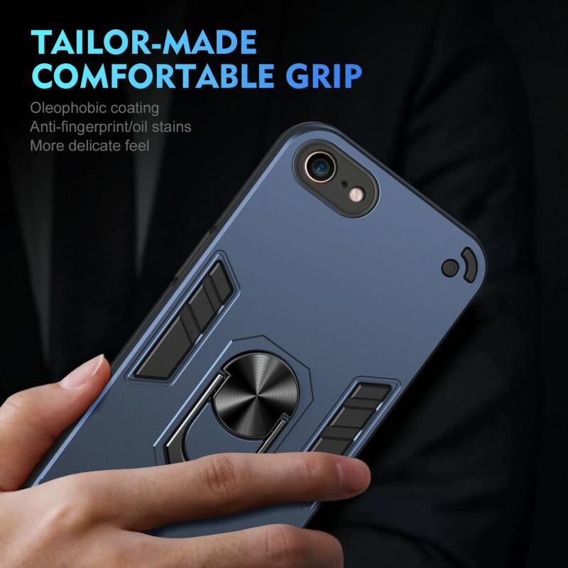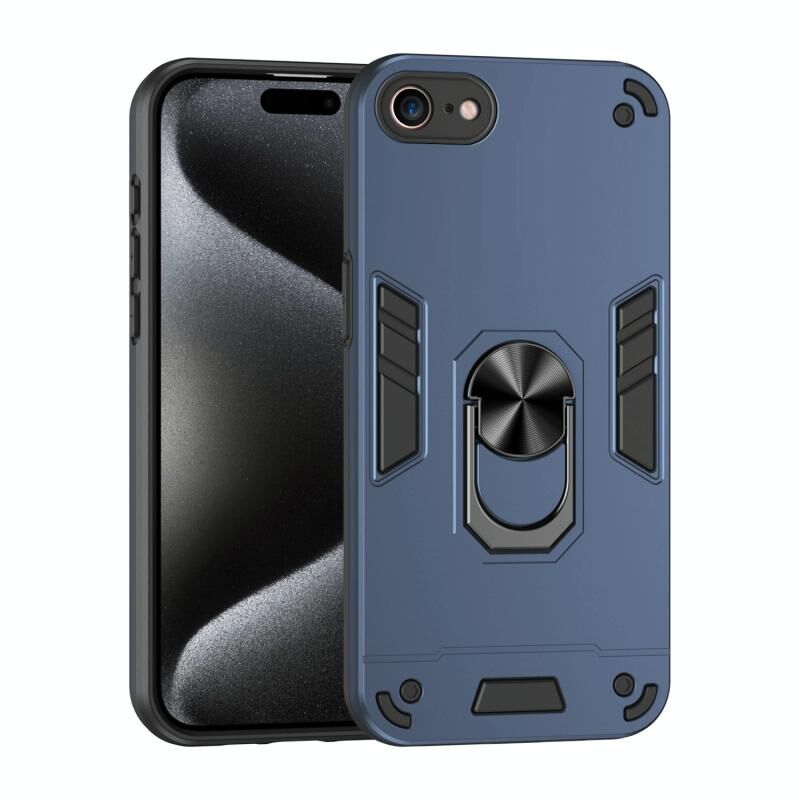 Θήκη τηλεφώνου με μεταλλική βάση δακτυλιδιού ανθεκτική στις κρούσεις για iPhone SE 2022 / SE 2020 (Μπλε)