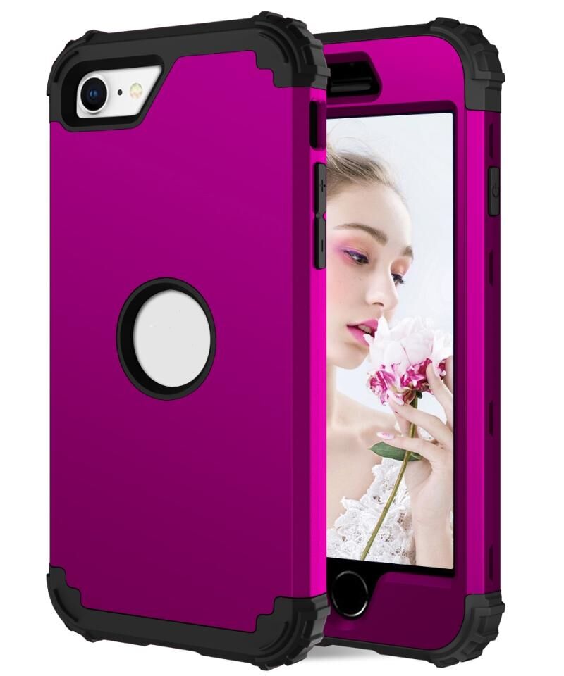 Θήκη Προστασίας Κινητού Τριών Στρωμάτων Σιλικόνης + PC για iPhone SE 2022 / SE 2020, Αντικραδασμική (Κόκκινη)