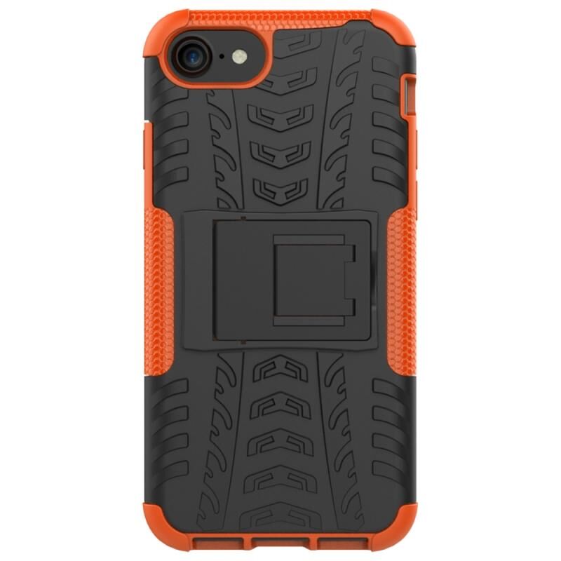 Θήκη προστασίας για iPhone SE 2022 / SE 2020 με υφή ελαστικού, αντικραδασμική από TPU+PC με βάση στήριξης (Κόκκινη)
