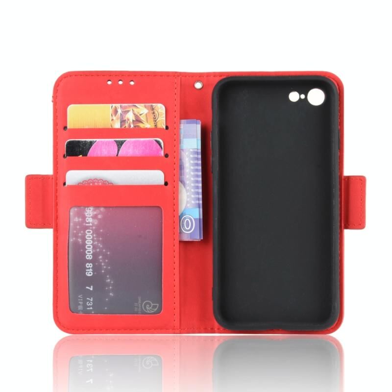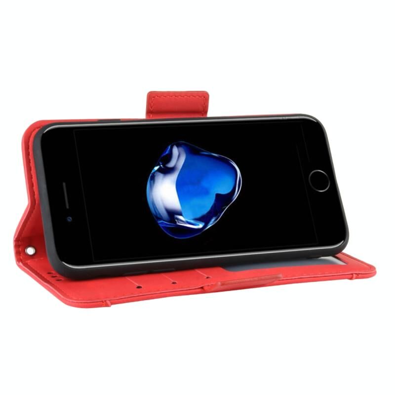 Θήκη για iPhone SE 2022 / SE 2020 σε στυλ πορτοφολιού, με υφή δέρματος μοσχαριού και ξεχωριστή υποδοχή για κάρτες (Μαύρο)