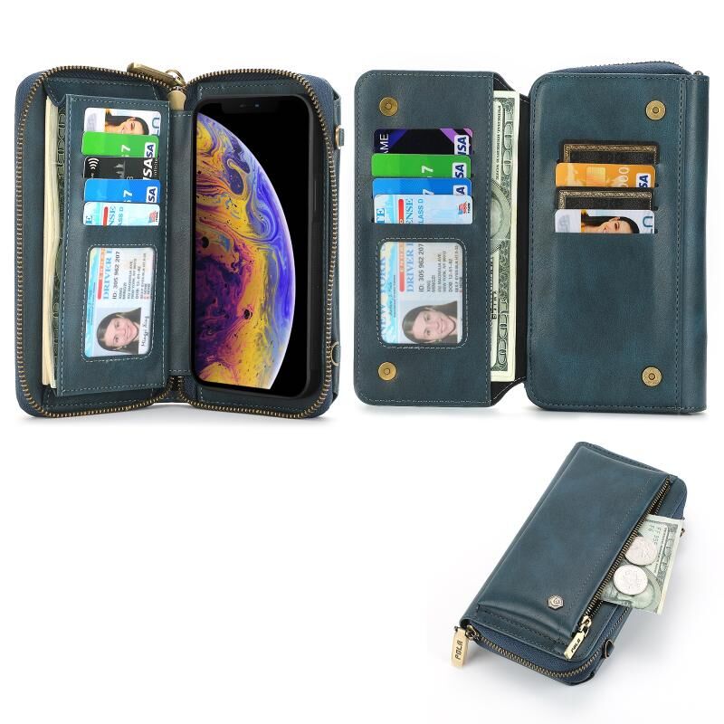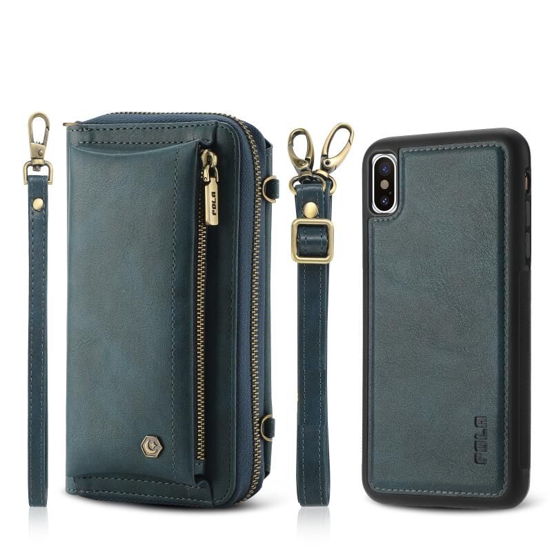 Θήκη τηλεφώνου για iPhone X, πολυλειτουργική, δερμάτινη, με φερμουάρ και λουρί για τον ώμο (Κόκκινη)