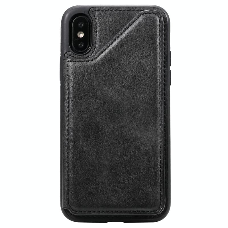 Θήκη προστασίας για iPhone X με αντικραδασμική υφή δέρματος μοσχαριού, με βάση στήριξης & θήκες για κάρτες & πλαίσιο (Μαύρο)