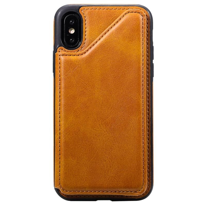 Θήκη προστασίας για iPhone X με αντικραδασμική υφή δέρματος μοσχαριού, με βάση στήριξης & θήκες για κάρτες & πλαίσιο (Καφέ)