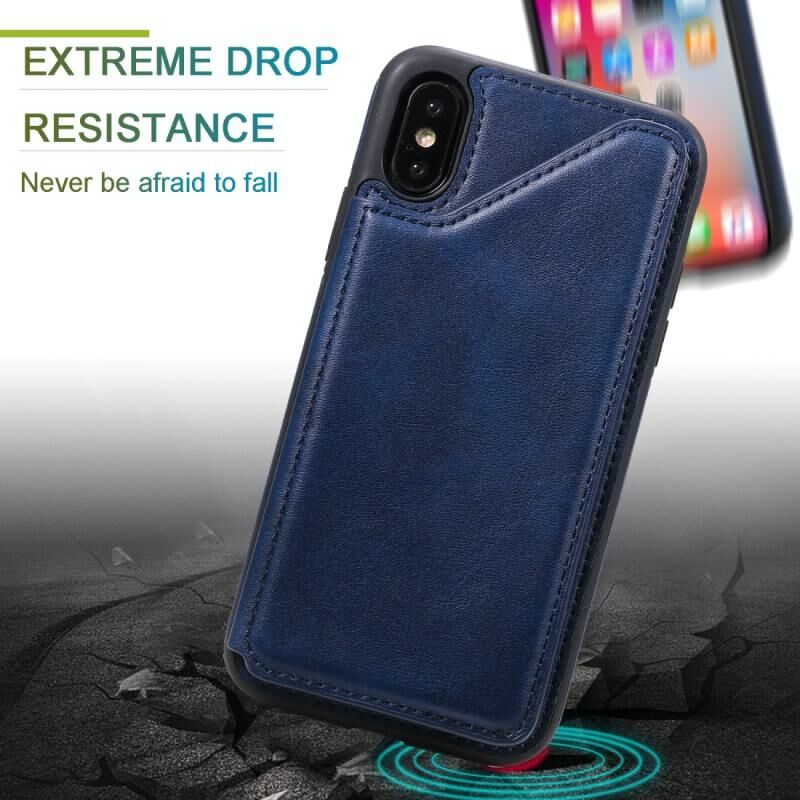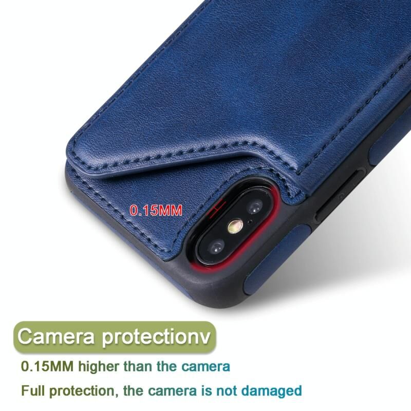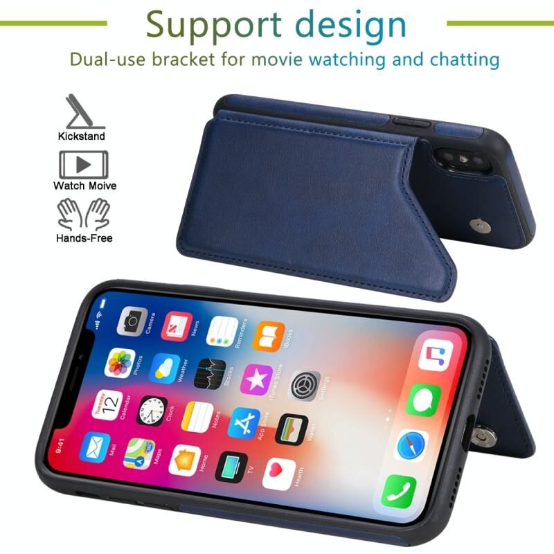 Θήκη για iPhone X ανθεκτική στις κρούσεις με υφή δέρματος μοσχαριού, με βάση στήριξης & θήκες για κάρτες & πλαίσιο (Καφέ)