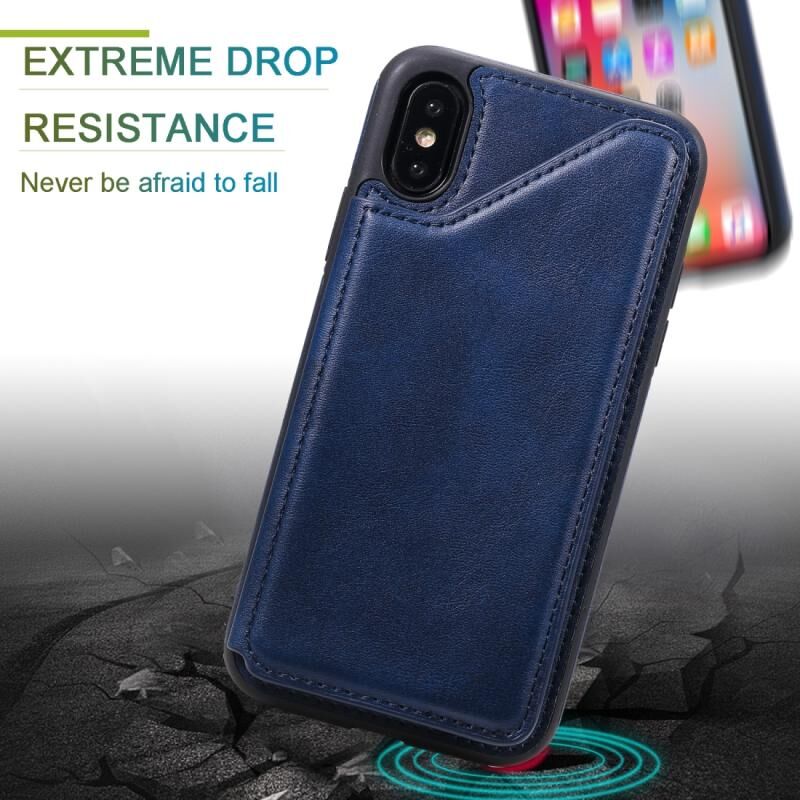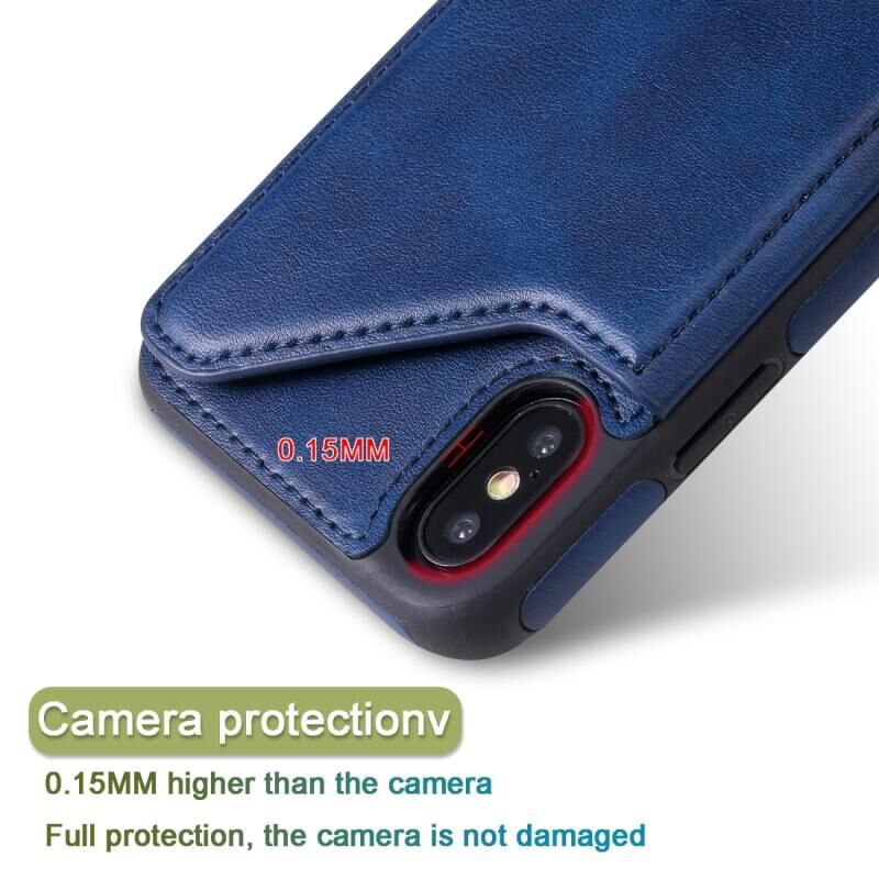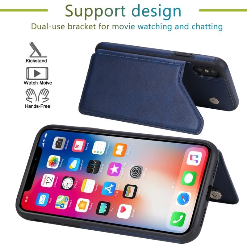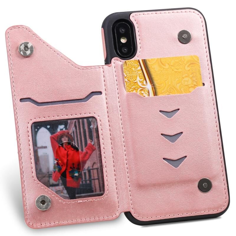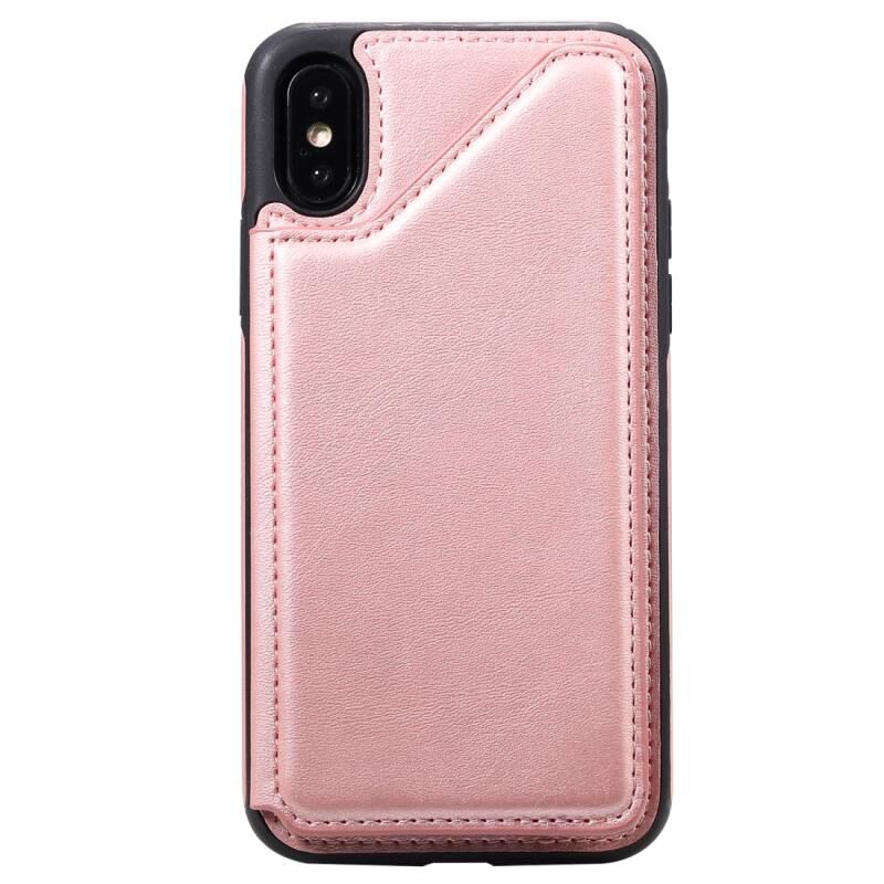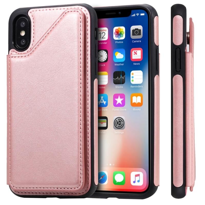For iPhone X Shockproof Calf Texture Protective Case with Holder & Card Slots & Frame(Rose Gold)