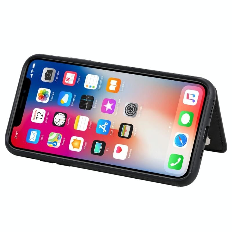 For iPhone X Six Cats Embossing Pattern Protective Case with Holder & Card Slots & Photo Frame(Black)