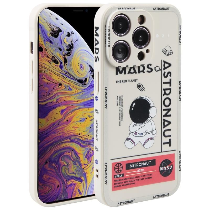 Θήκη τηλεφώνου για iPhone X / XS με σχέδιο αστροναύτη, σιλικόνης, ευθείας άκρης (Αστροναύτης Άρη - Λευκό)