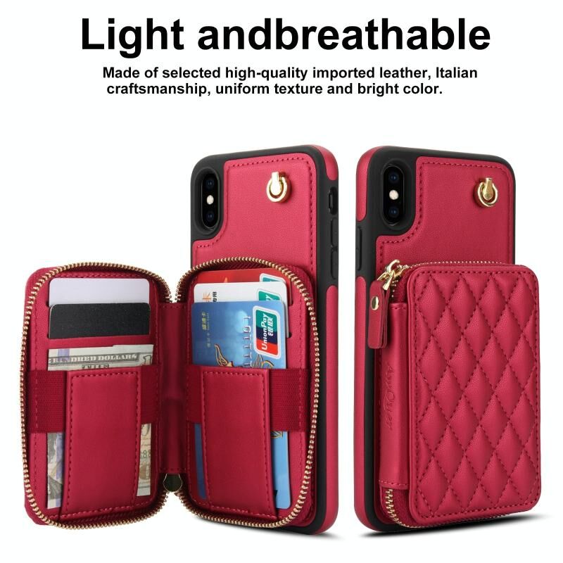 4. Πορτοφόλι με Φερμουάρ: Υπερπολλαπλές υποδοχές καρτών μπορούν να χωρέσουν πολλές κάρτες. Το άνοιγμα και το κλείσιμο του διαμερίσματος με φερμουάρ για μετρητά προστατεύει τα χρήματά σας. Άνετο και πρακτικό για να βγείτε έξω με μια τσάντα κινητού!