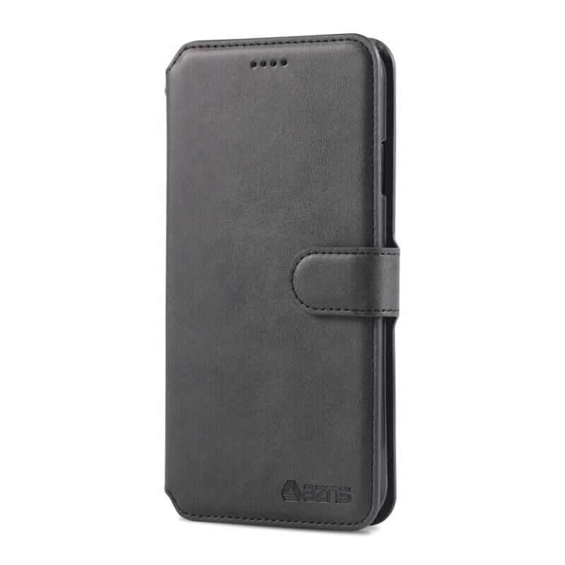 Θήκη για iPhone X / XS AZNS με υφή μοσχαριού, μαγνητικό, οριζόντιο, από δερματίνη PU με βάση & θήκες για κάρτες & κορνίζα φωτογραφιών (Μαύρο) (Μαύρο)