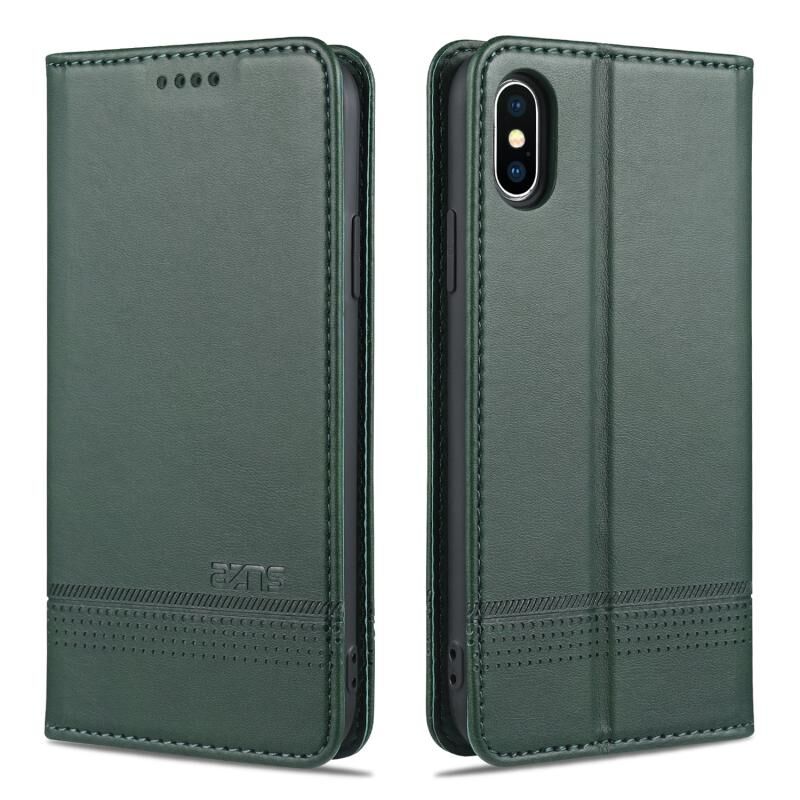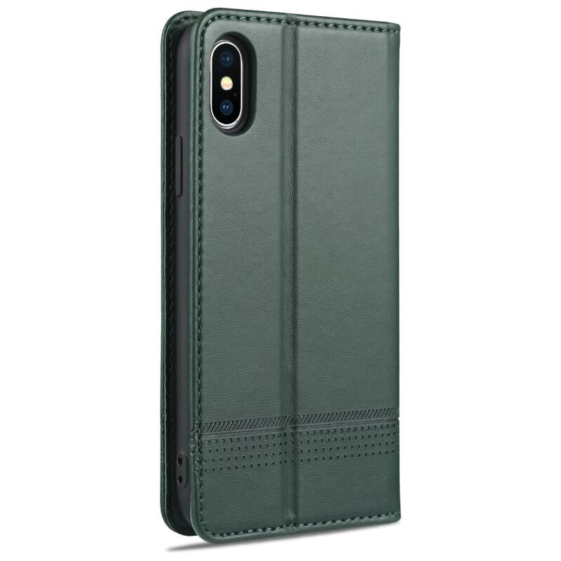 Θήκη δέρματος οριζόντιας αναδίπλωσης με μαγνητικό κλείσιμο και υφή μοσχαριού για iPhone X / XS AZNS με θήκες για κάρτες & βάση & πορτοφόλι (Σκούρο Μπλε) (AZNS)