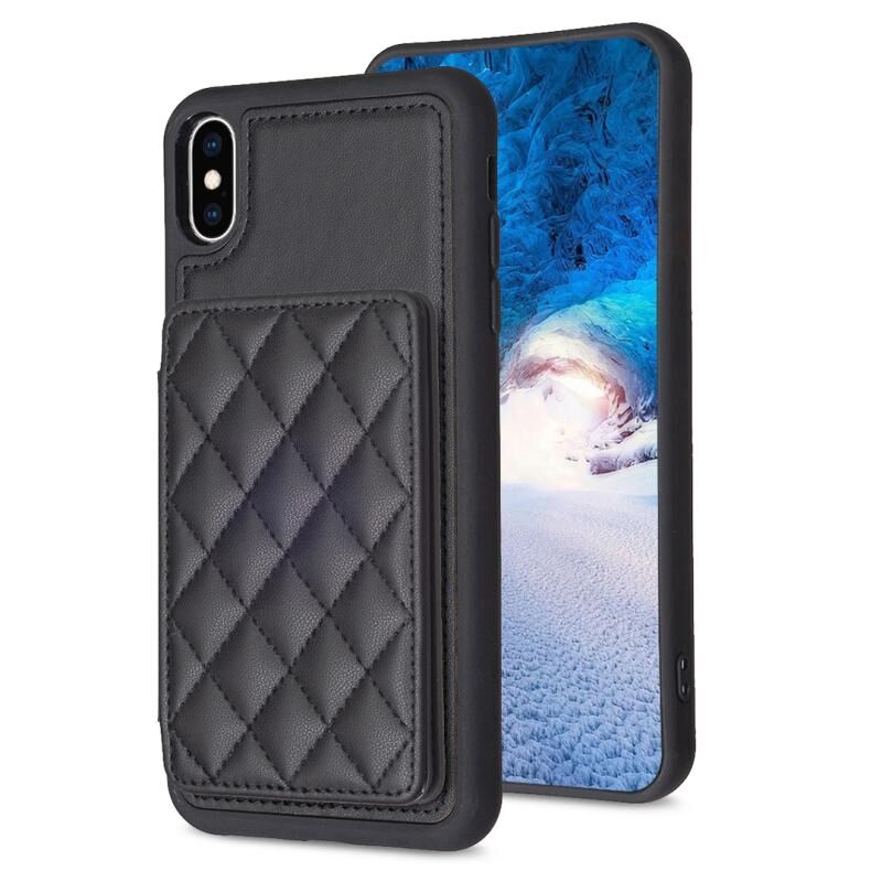For iPhone X / XS BF25 Square Plaid Card Bag Holder Phone Case(Black)