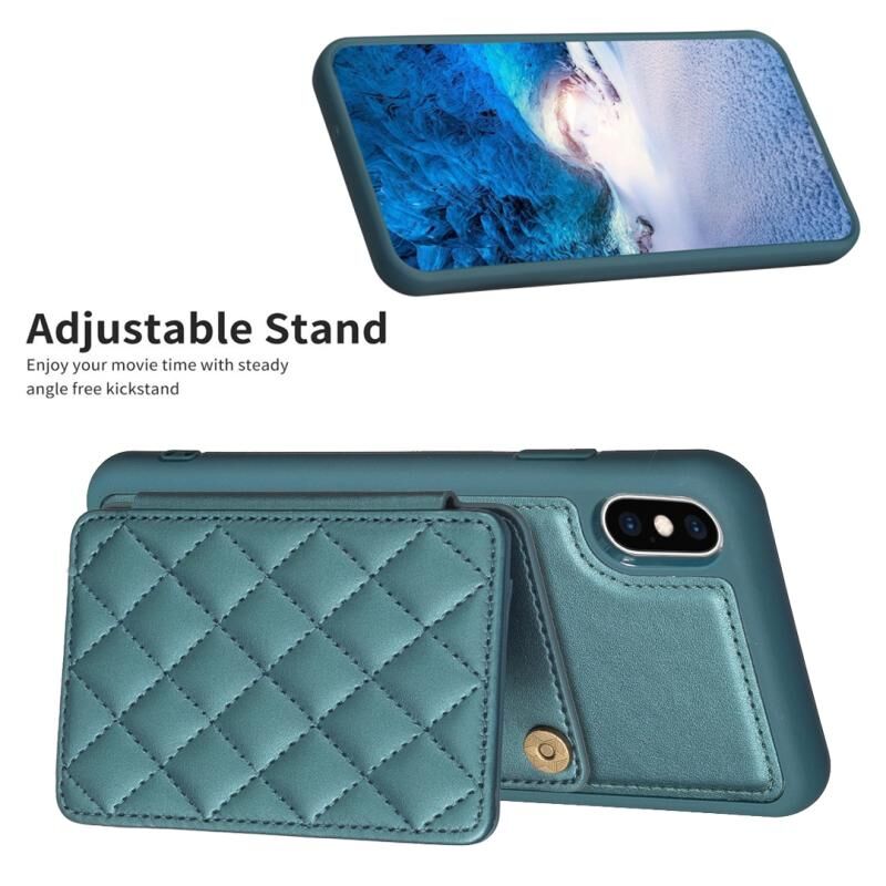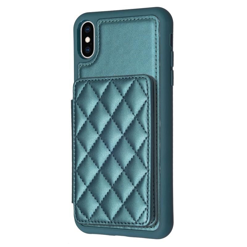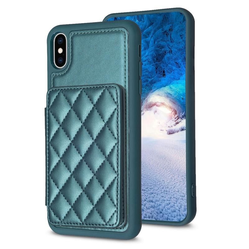 For iPhone X / XS BF25 Square Plaid Card Bag Holder Phone Case(Green)
