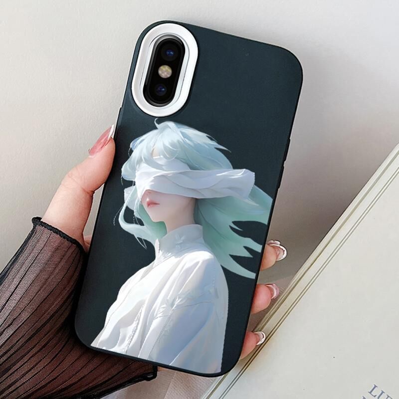 Θήκη τηλεφώνου για iPhone X / XS, υβριδική από PC και TPU, με σχέδιο κορίτσι με μάσκα (Μαύρο)