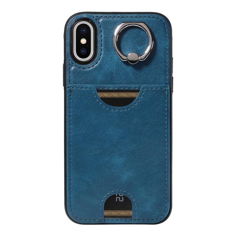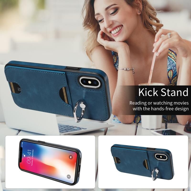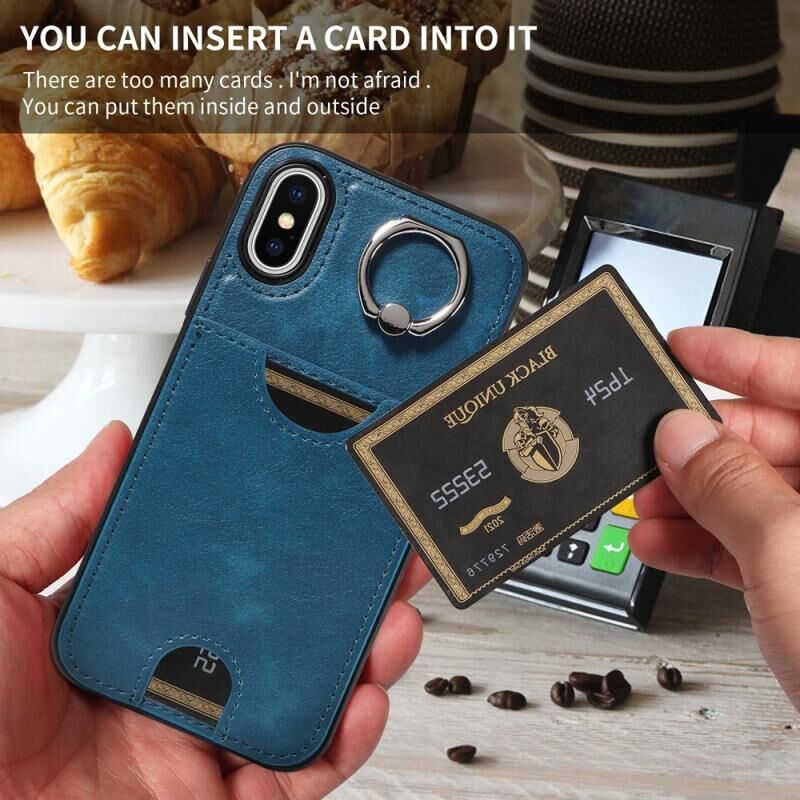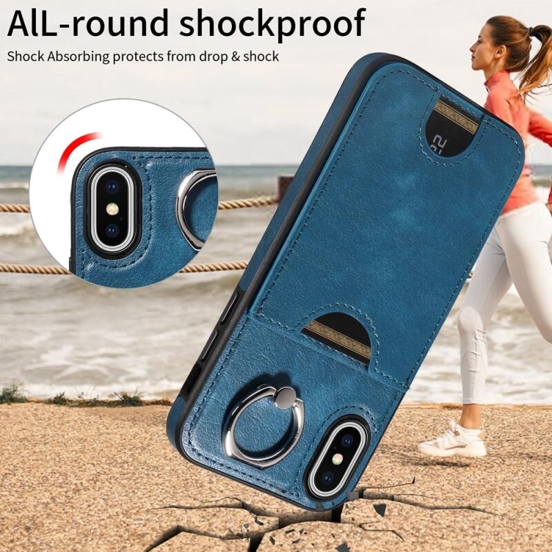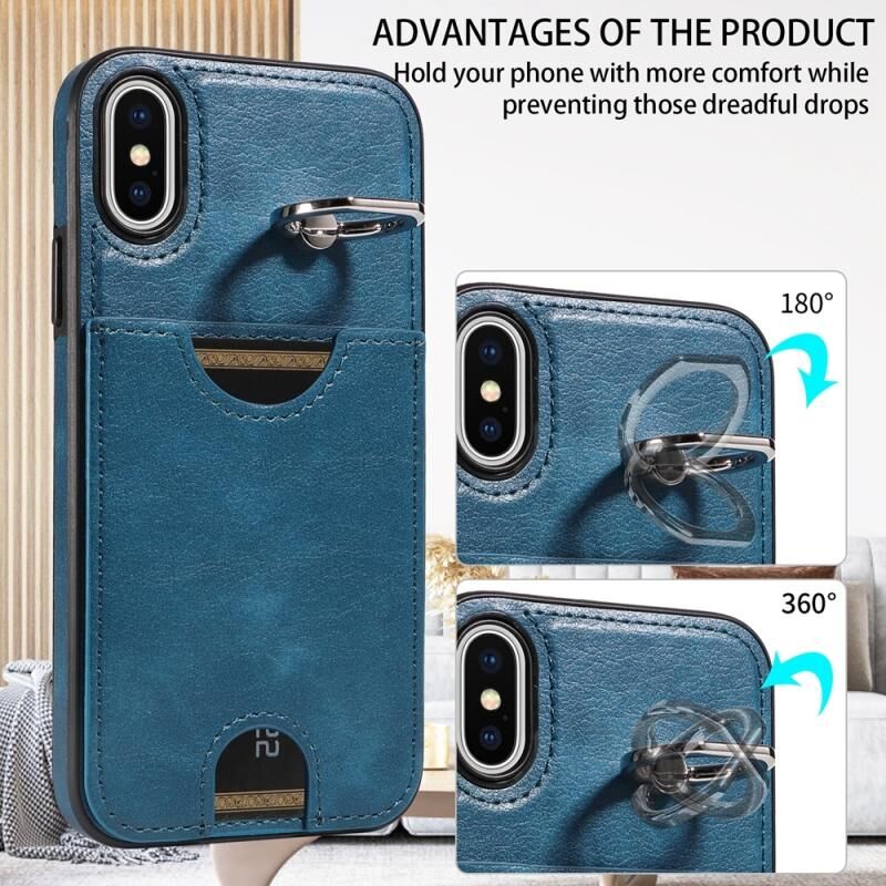 Θήκη τηλεφώνου για iPhone X / XS με υφή μοσχαριού, θήκη κάρτας και δακτύλιο στήριξης (Κόκκινο)