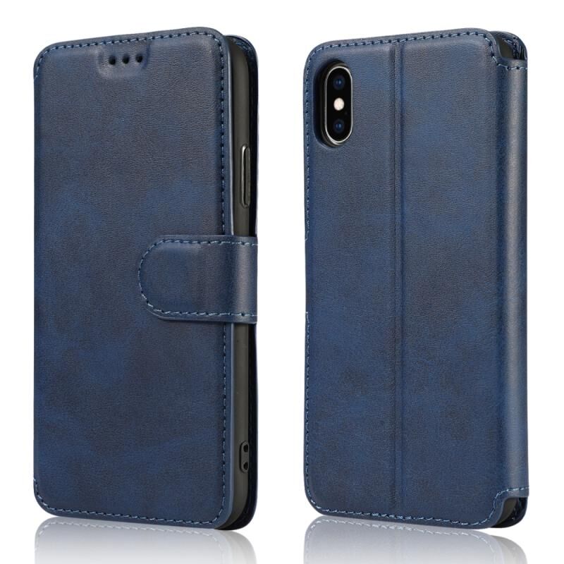 Θήκη δέρματος οριζόντιας αναδίπλωσης με μαγνητικό κούμπωμα και υφή μοσχαριού για iPhone X / XS, με βάση, θήκες καρτών, πορτοφόλι και κορνίζα φωτογραφιών (Μαύρο)