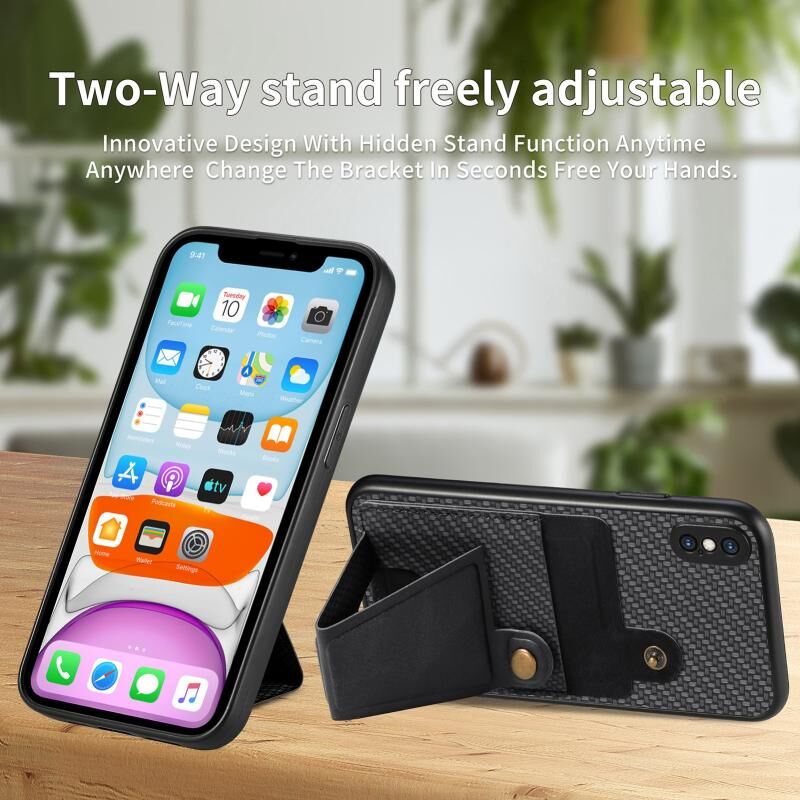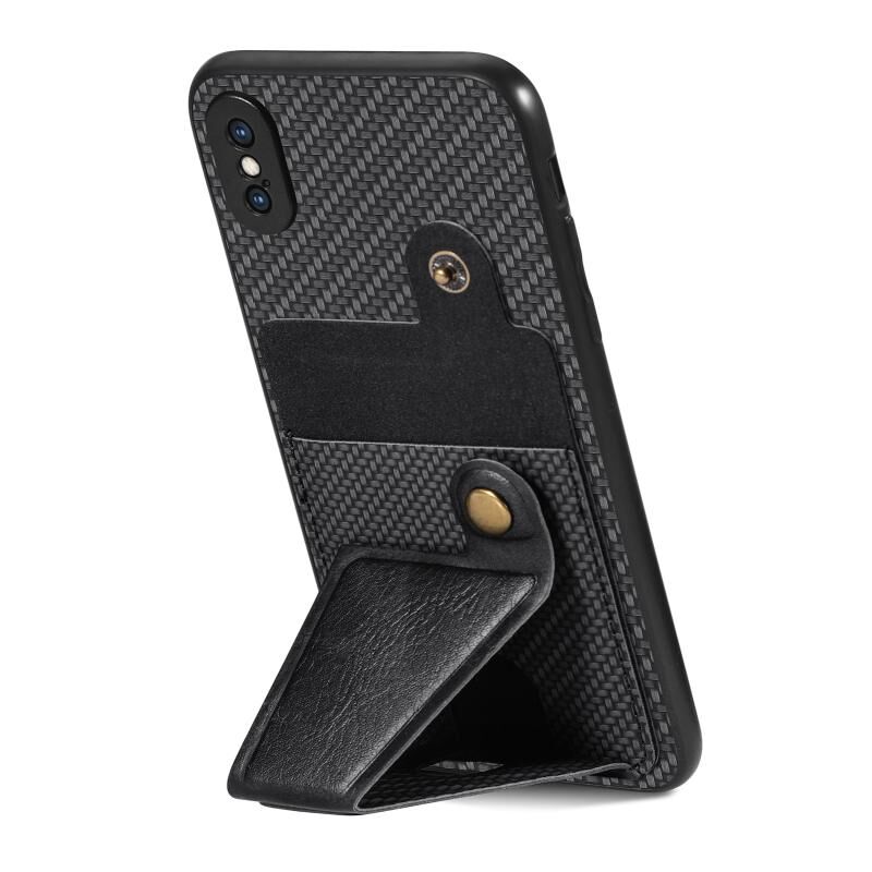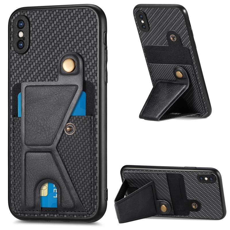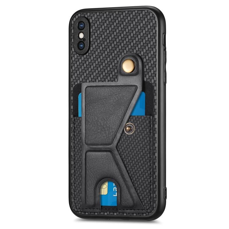 Θήκη κινητού τηλεφώνου τύπου πορτοφολιού με κάρτες, από ανθρακονήματα, για iPhone X / XS, με σχήμα Κ (Μαύρο)