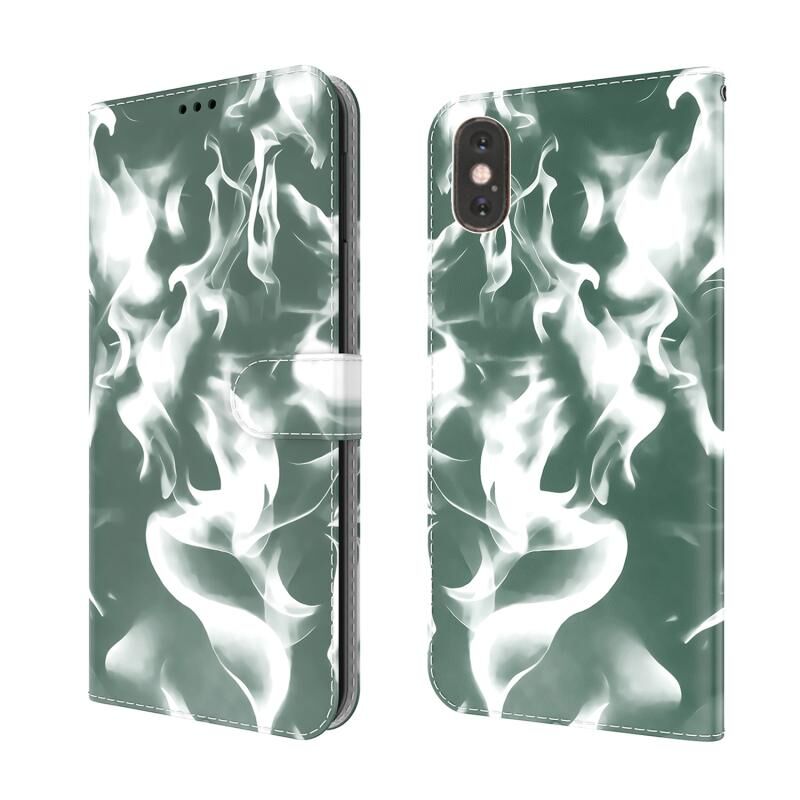 Θήκη δέρματος οριζόντιας αναδίπλωσης με σχέδιο σύννεφων και ομίχλης για iPhone X / XS με βάση & υποδοχή κάρτας & πορτοφόλι (Μέντας Πράσινο)