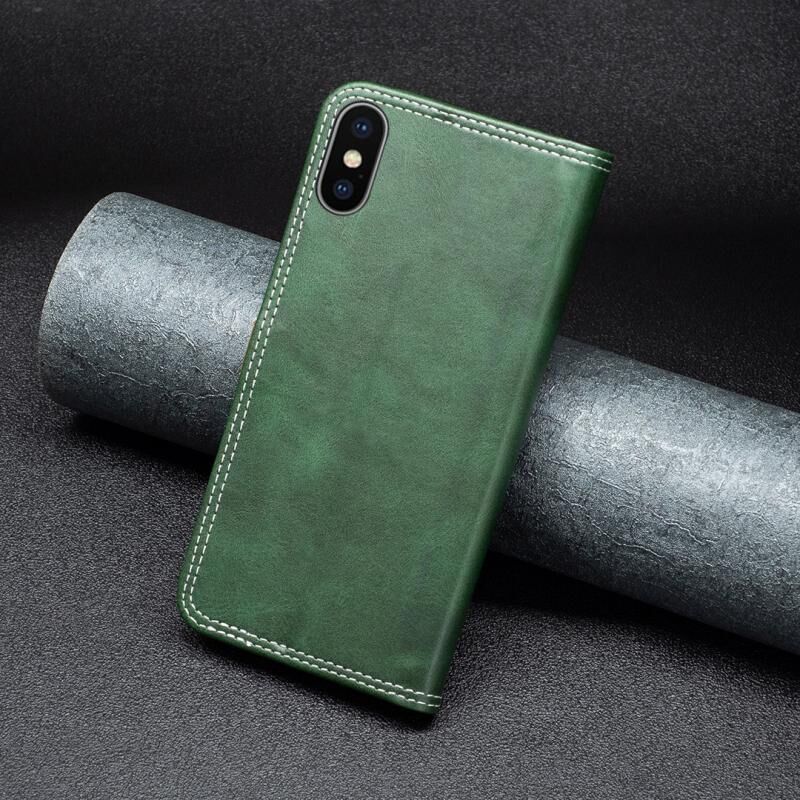 Θήκη δέρματος διπλής ραφής για iPhone X / XS σε μαύρο χρώμα.