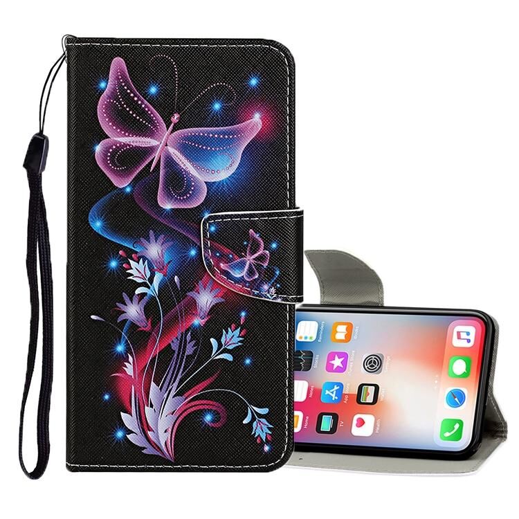 Θήκη δέρματος οριζόντιας αναδίπλωσης με σχέδιο έγχρωμης ζωγραφικής για iPhone X / XS με βάση & υποδοχές καρτών & πορτοφόλι (Κόκκινο)