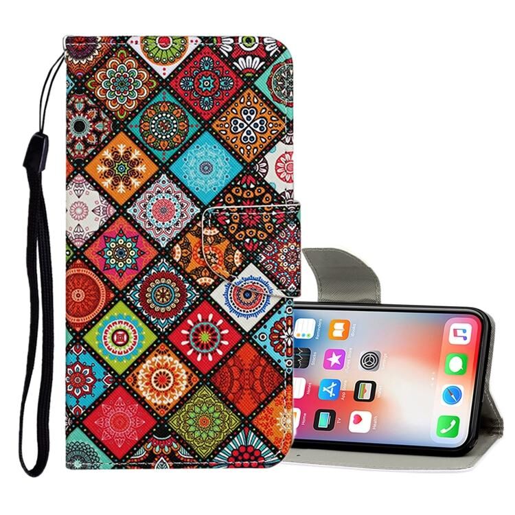 Θήκη δέρματος οριζόντιας αναδίπλωσης με σχέδια ζωγραφικής και χρώματα για iPhone X / XS με βάση στήριξης & υποδοχές καρτών & πορτοφόλι (Κόκκινο)