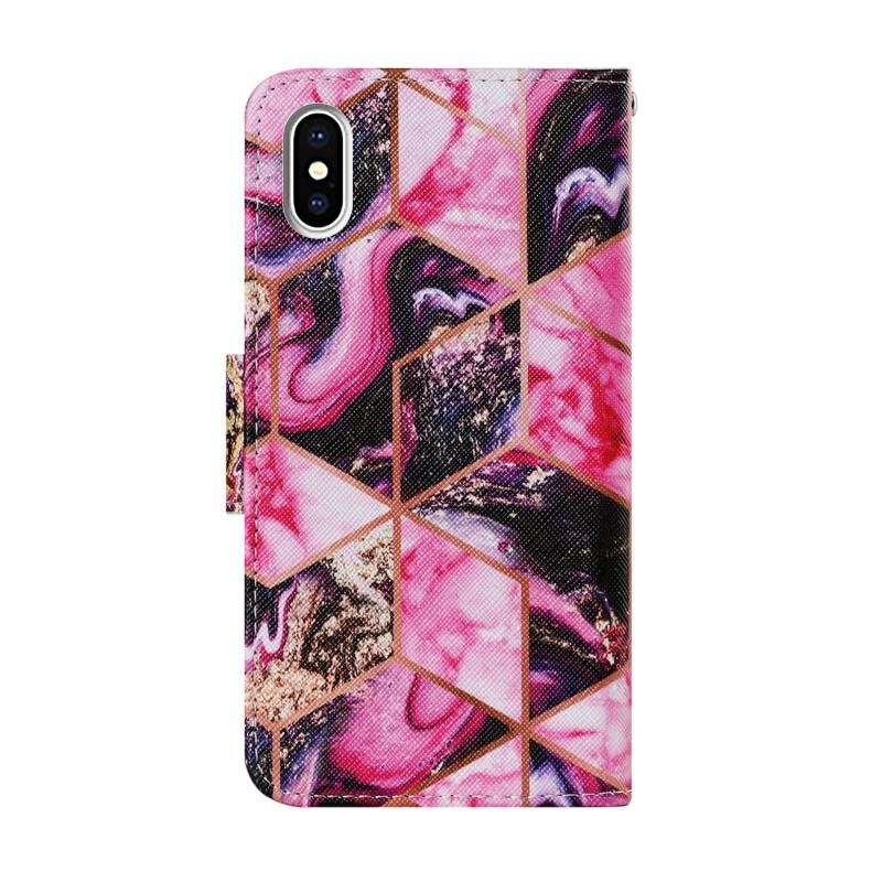 Θήκη για iPhone X / XS με έγχρωμο σχέδιο, οριζόντια αναδίπλωση από δερματίνη PU με βάση, θήκες για κάρτες, πορτοφόλι & λουρί (Μαύρο Μάρμαρο)