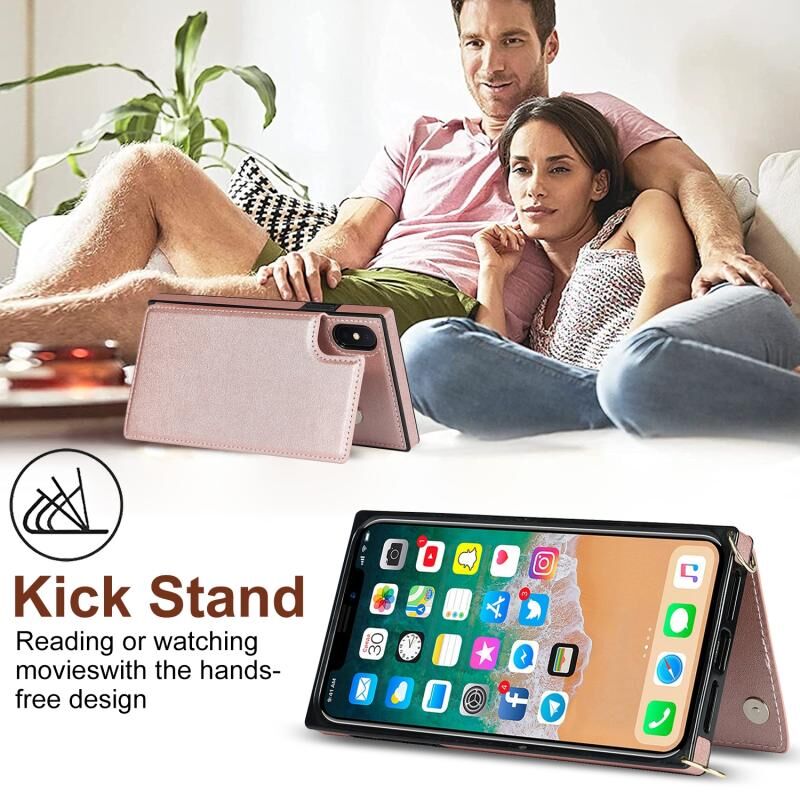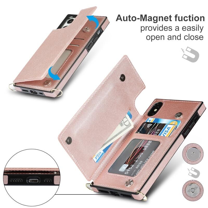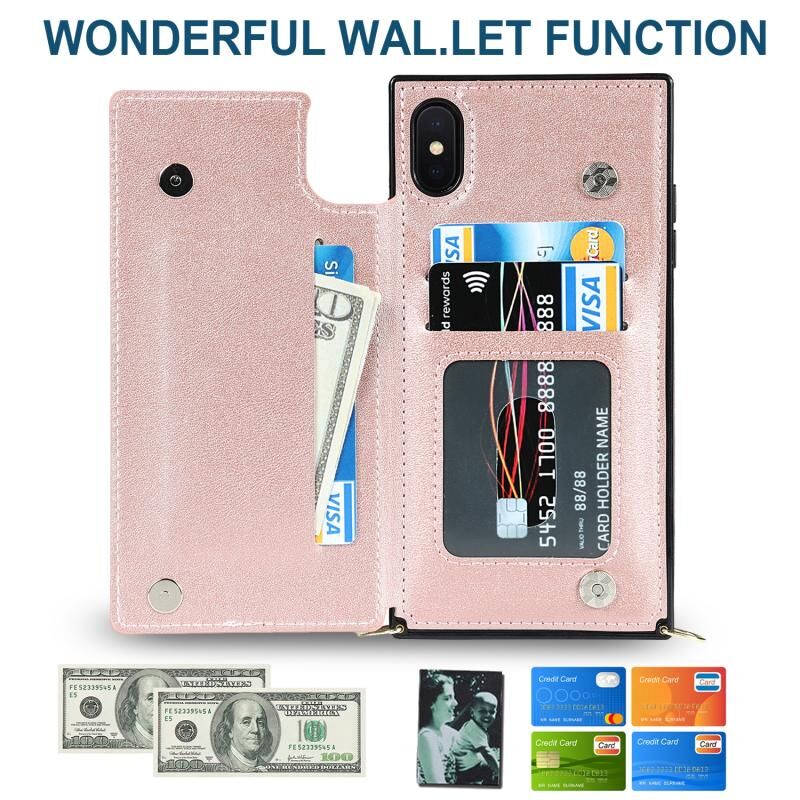 Για iPhone X / XS Διαγώνια Τσάντα Κάρτας Flip με Τετράγωνο Σχήμα και Διπλή Αγκράφα, Θήκη TPU+PU με Θήκες Καρτών & Πορτοφόλι & Φωτογραφία & Λουρί (Μαύρο)