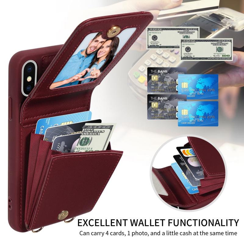 For iPhone X / XS Crossbody Lanyard Zipper Wallet Leather Phone Case(Wine Red)