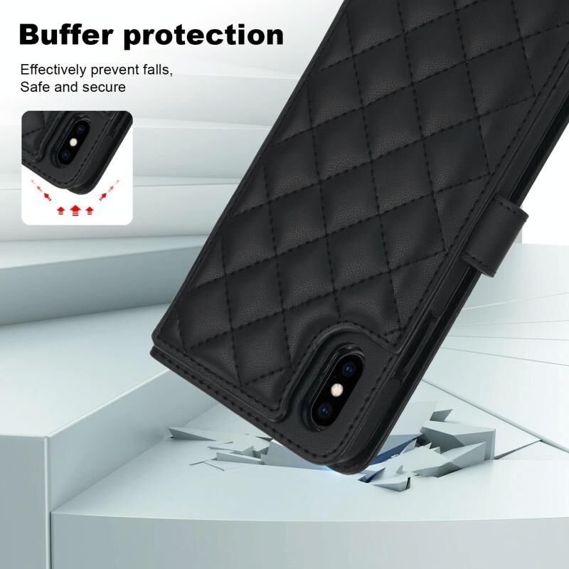 Θήκη τηλεφώνου από δέρμα με ρόμβους, πολυλειτουργική, για iPhone X / XS (Λευκό)
