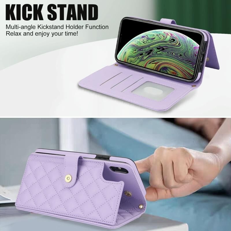 Θήκη τηλεφώνου από δέρμα με ρόμβους, πολυλειτουργική, για iPhone X / XS (Λευκό)