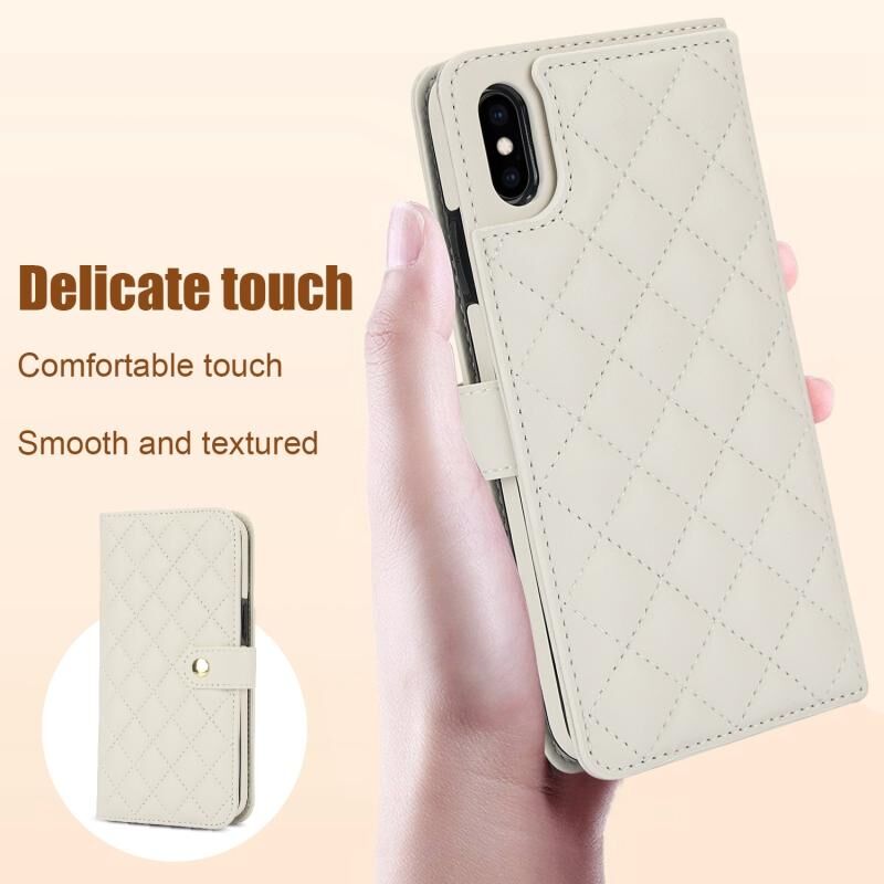 Θήκη τηλεφώνου από δέρμα με ρόμβους, πολυλειτουργική, για iPhone X / XS (Λευκό)