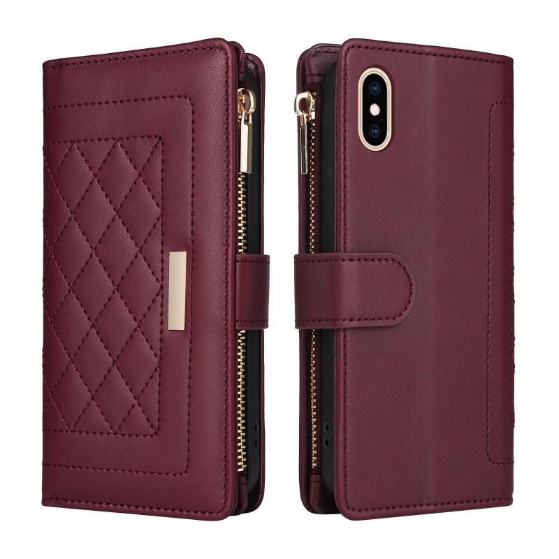 Θήκη τηλεφώνου από δέρμα σε σχήμα ρόμβου με φερμουάρ και λουρί για iPhone X / XS (Χρυσό ροζ)