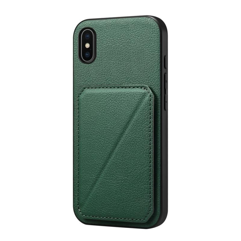 Θήκη τηλεφώνου για iPhone X / XS D04 με υφή μοσχαριού και διπλή υποδοχή κάρτας (Μαύρο)