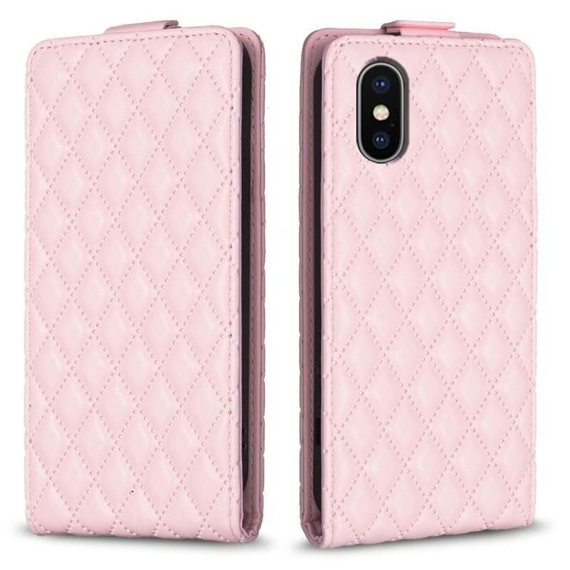 Θήκη τηλεφώνου από δέρμα με κάθετη αναδίπλωση και σχέδιο διαμαντένιου πλέγματος για iPhone X / XS (Σκούρο Μωβ)