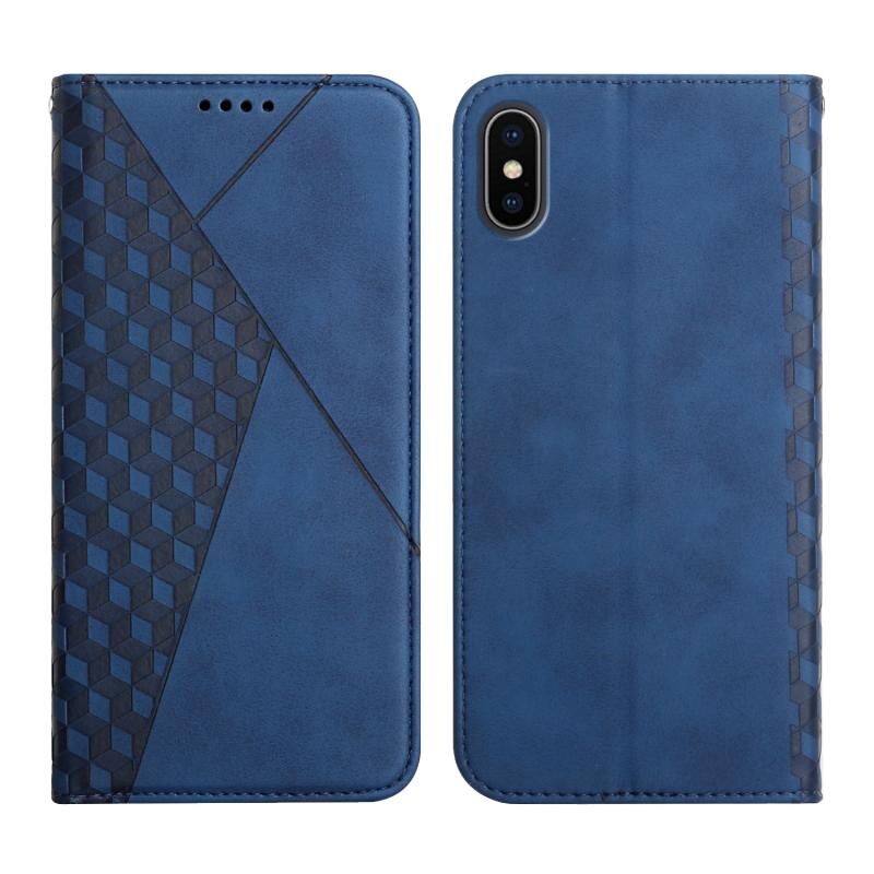 Θήκη δέρματος οριζόντιας αναδίπλωσης με μαγνητικό κλείσιμο για iPhone X / XS με σχέδιο διαμαντιού, υφή δέρματος, υποδοχές για κάρτες, βάση και πορτοφόλι (Καφέ)