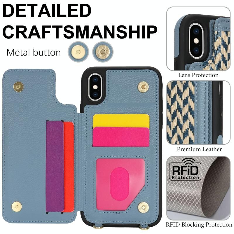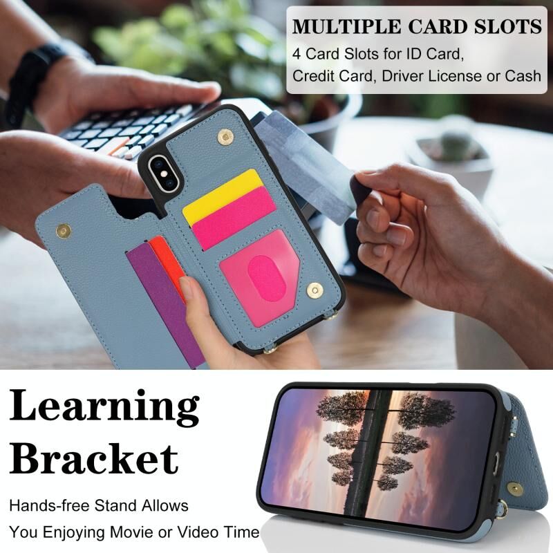Θήκη τηλεφώνου πλήρους κάλυψης με διπλή αγκράφα, θήκη καρτών και λουρί για το σώμα για iPhone X / XS (Μαύρο)